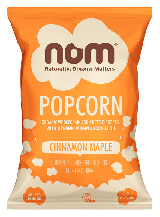 nom organic cinnamon maple popcorn 25g