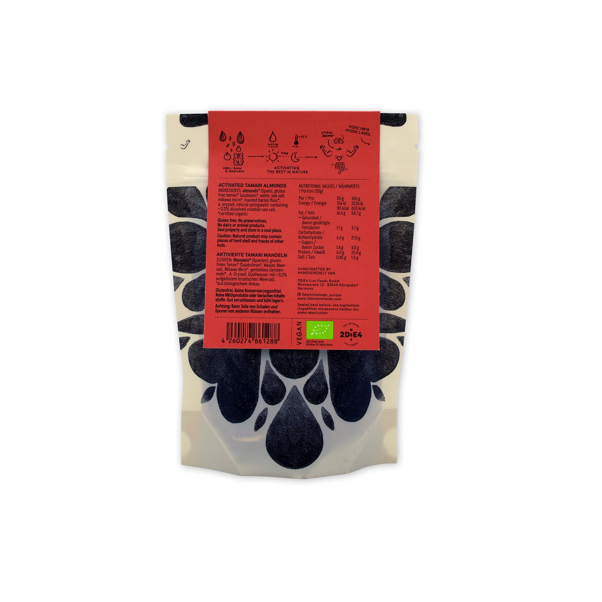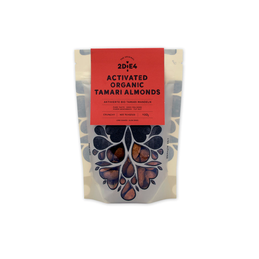 "The savoury, tasty, nutritious, crunchy Activated Almonds with Tamari, try them and fall in love."
