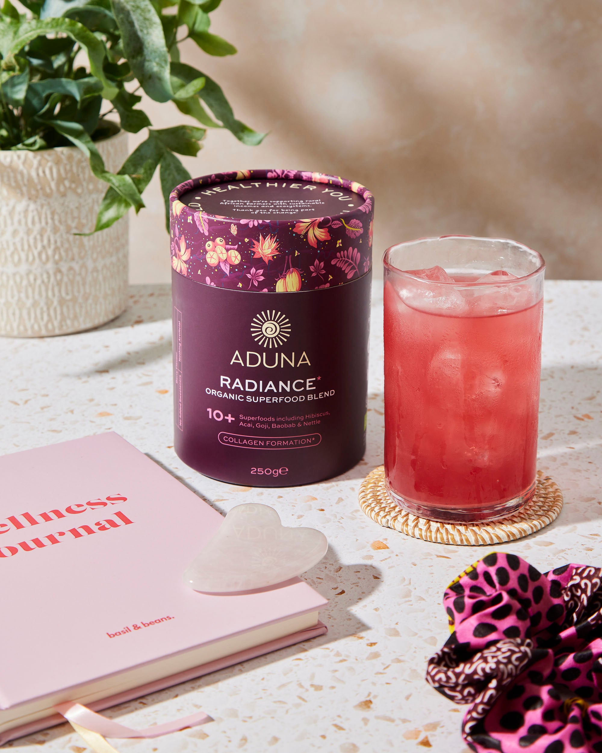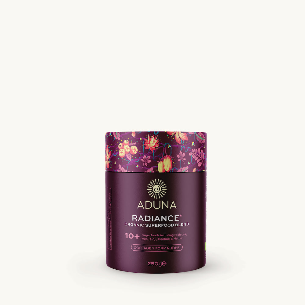 "Aduna Beauty Advanced Blend is a berryliciously tangy and rejuvenating combination of our Essential Superfood Formula™PLUS our daily Beauty Blend - developed with our nutritionist for skin so radiant it glows. Each Advanced Blend is built on a foundation of the Aduna Essential Superfood Formula™. This expertly curated formulation of nutrient dense superfoods, prebiotics and nootropics helps to support your everyday health, including the gut, nervous system and immune function – all critical to everyday wellbeing."