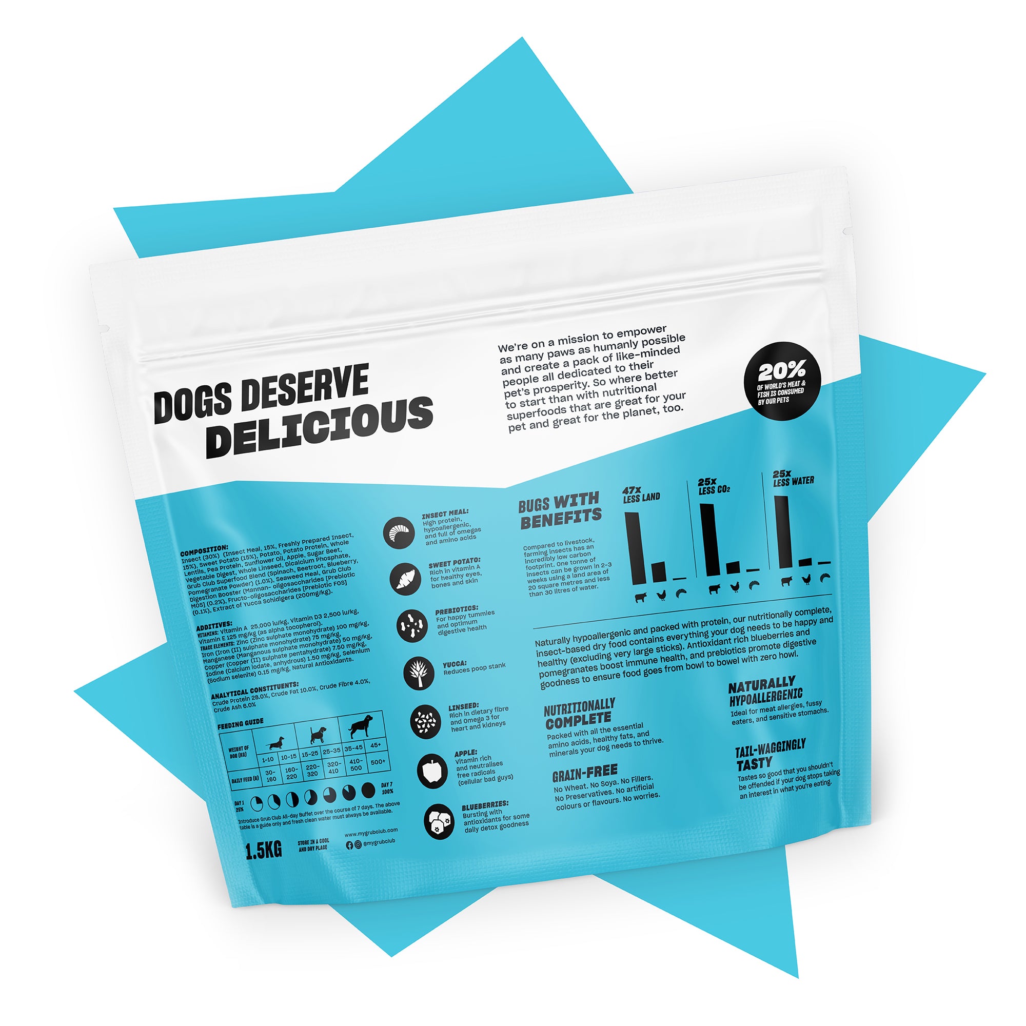 "Hypoallergenic, grain-free complete dog food. Novel protein and hypoallergenic recipe with added prebiotics to support your dog's gut health - perfect for sensitive dogs. Added superfood ingredients like blueberries and pomegranate provide an antioxidant boost to support immunity and health. Made in the UK"
