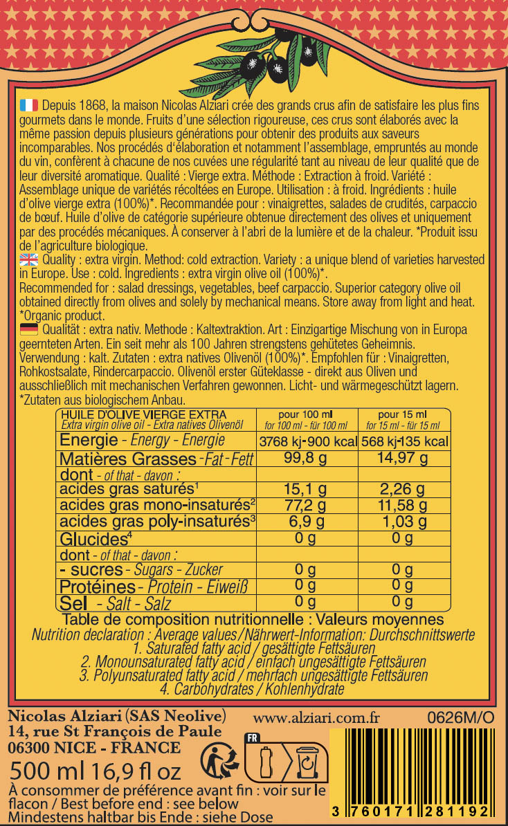 Alziari Pauline Extra Virgin Olive Oil 500ml