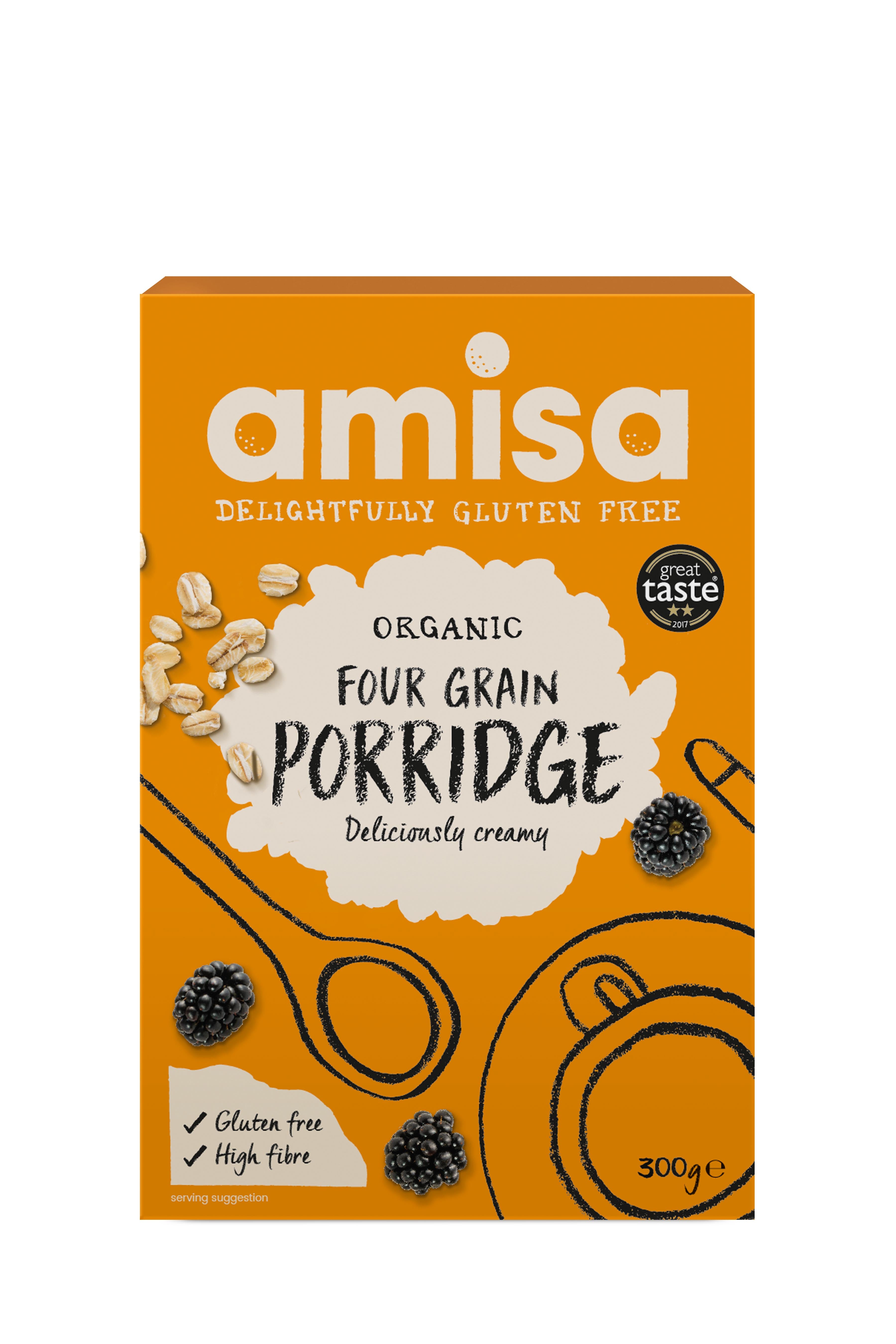 "Gluten free organic four grain porridge, containing a tasty blend of wholegrain rolled oats, millet, buckwheat and puffed amaranth. This warming and nutritious breakfast is east and quick to prepare. Delicious served topped with honey, jam or stewed fruits. "