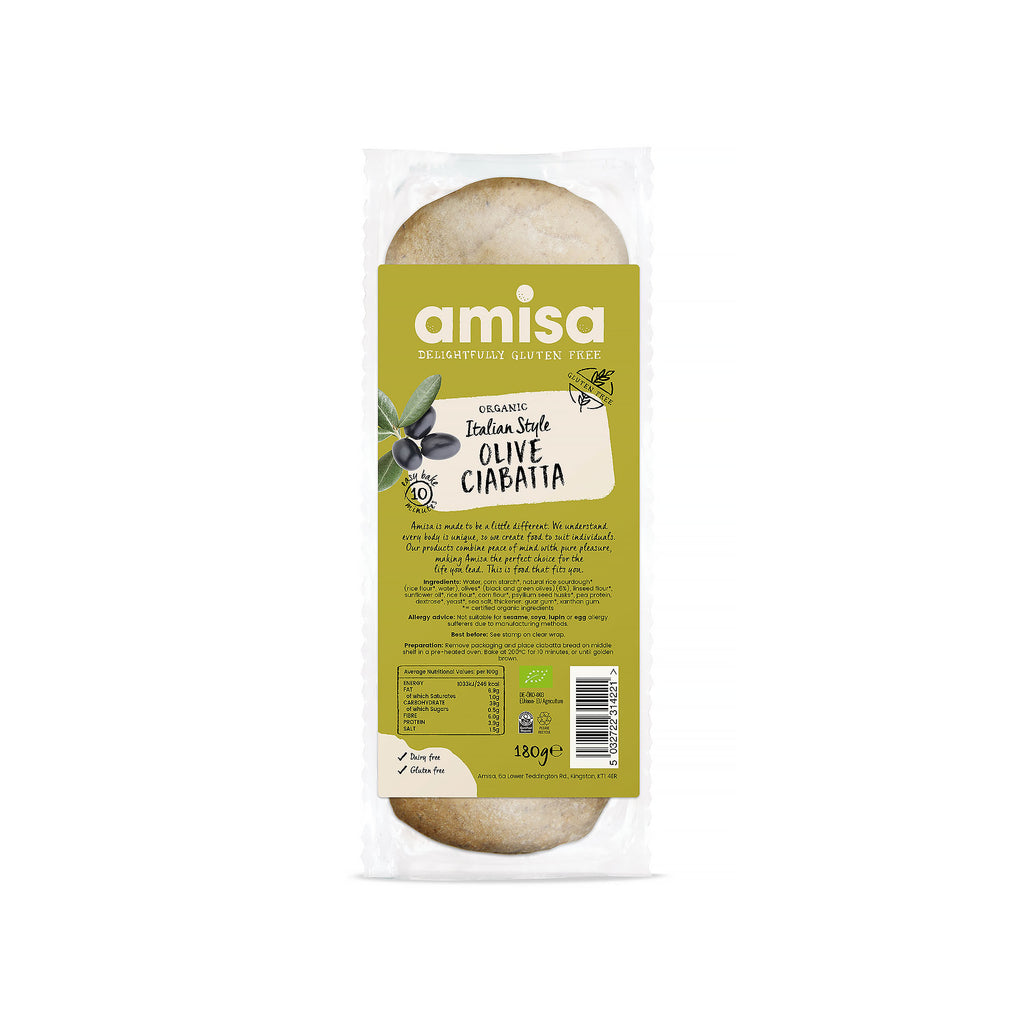 Amisa Olive Ciabatta - White Organic Glutenfree 180g