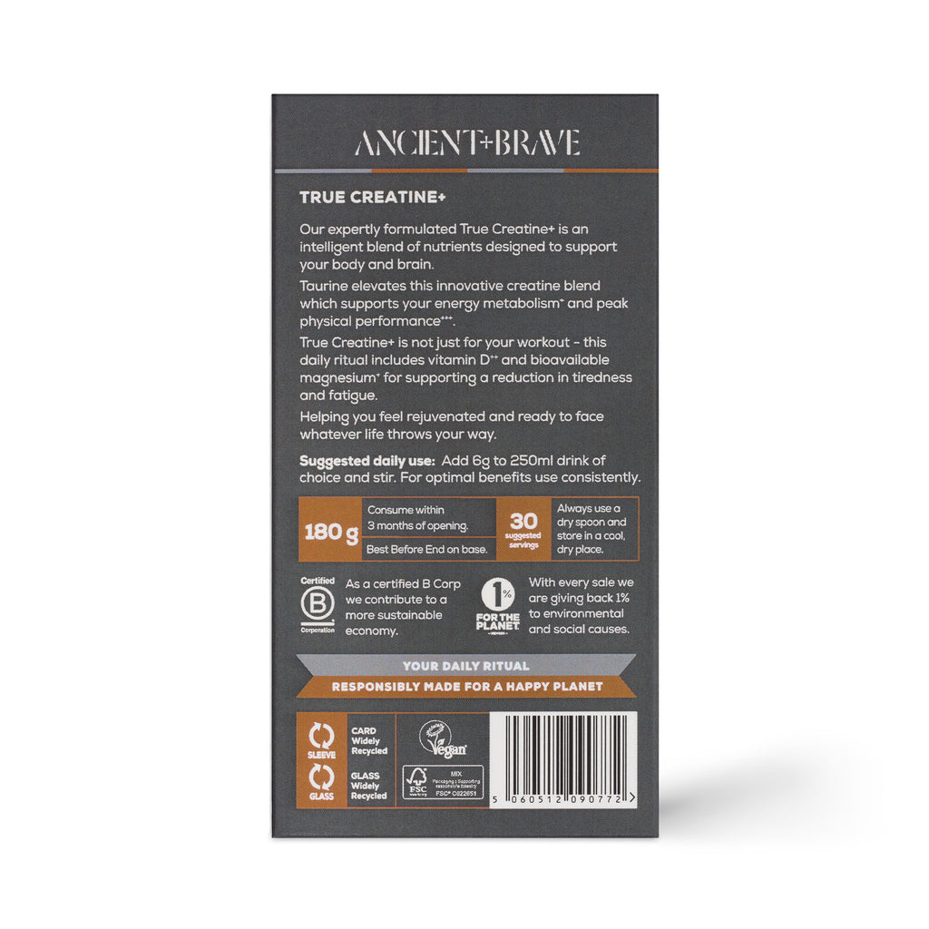 "True Creatine+ is designed to ignite your inner potential. An expertly formulated blend enhanced with taurine, Vitamin D and magnesium to elevate energy, muscles, bones and cognitive health."