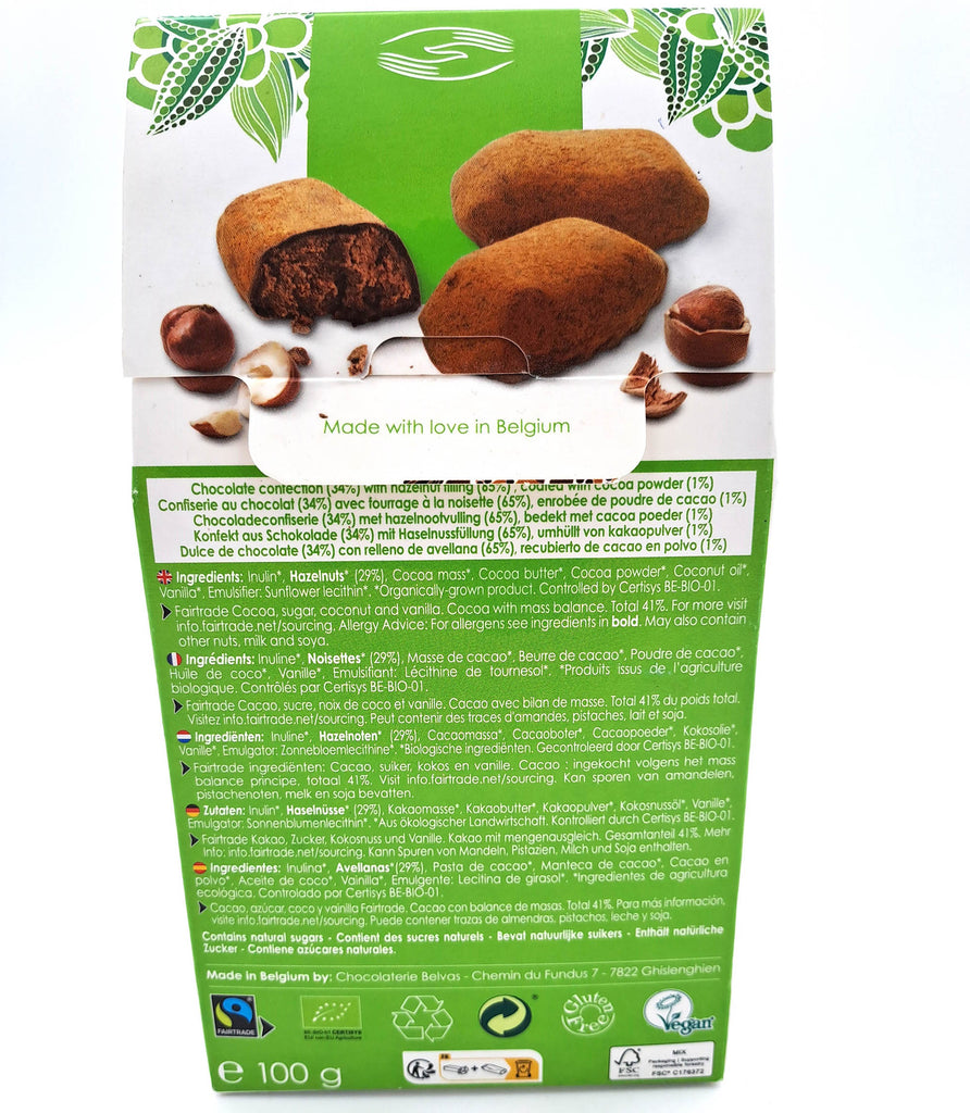 Gourmet Chocolate Truffles with Italian roasted hazelnuts for enhanced flavor. Delicious truffles without the added sugars. A perfect balance of rich chocolate and nutty hazelnut flavors.