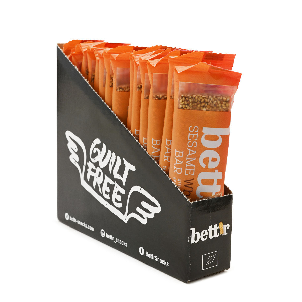 "A special ensemble of the dense, earthy natural flavour of unhulled sesame seeds & the characteristic caramel nuance of coconut blossom sugar. Bett'r Sesame bar with great taste & crunchy experience."