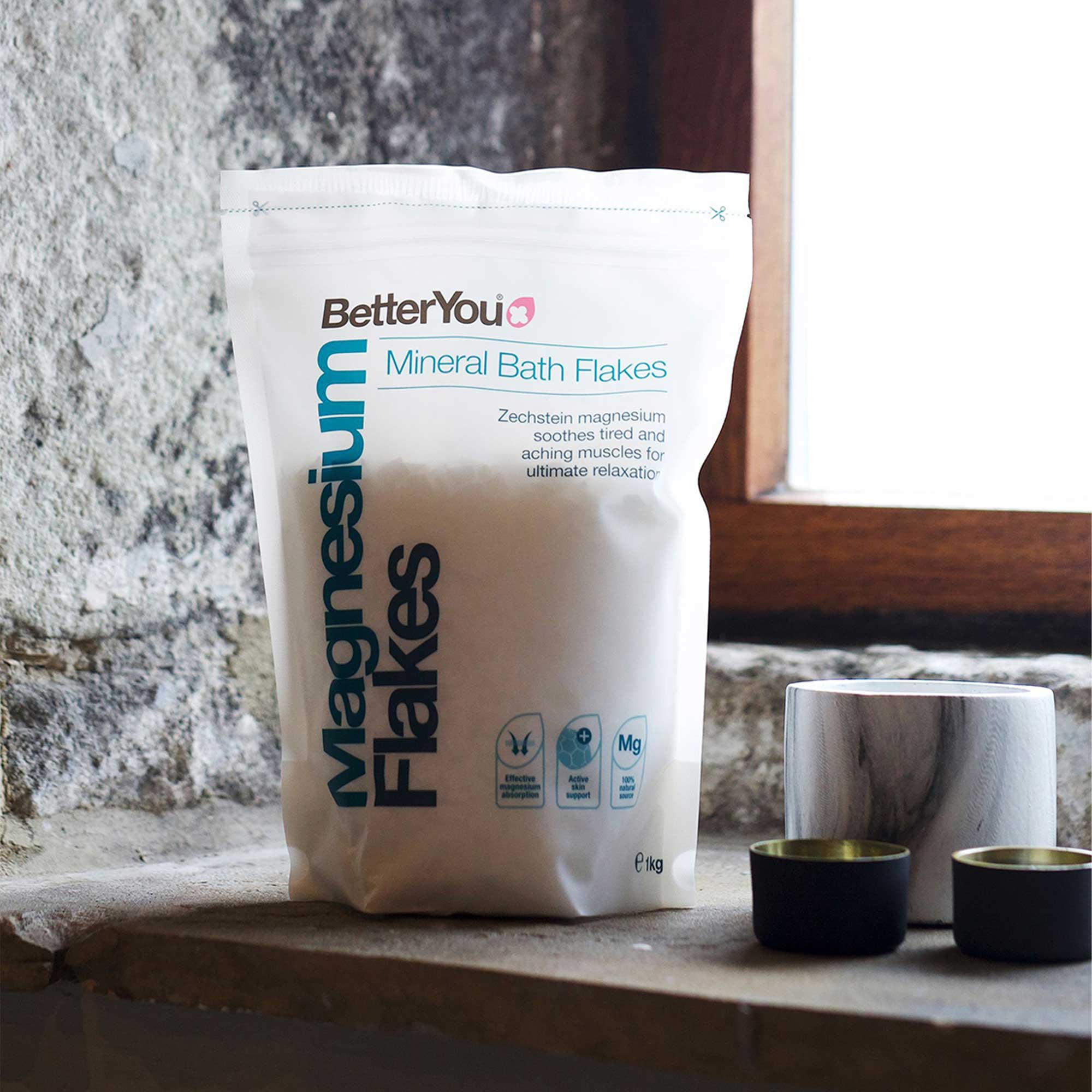 BetterYou Magnesium Flakes can be added to your bath to help soothe tired and aching muscles for the ultimate relaxation. Pure Zechstein Inside® Magnesium Flakes Promotes natural relaxation and soothes aching and tired muscles. Suitable for baths and footbaths.