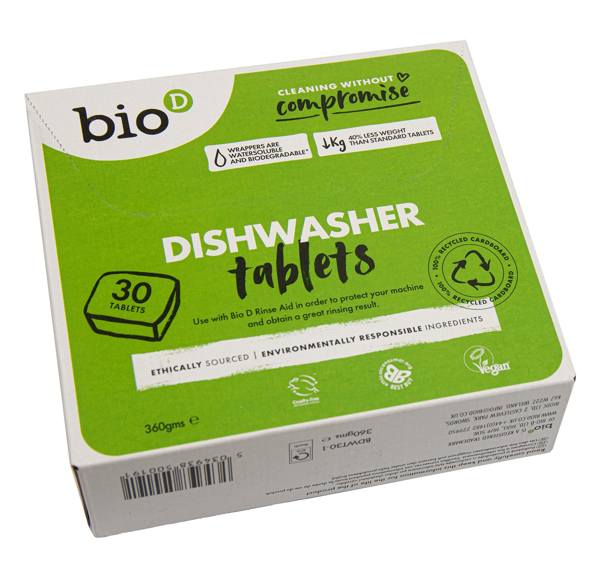 These dishwasher tablets pack a powerful punch and will keep your plates & cutlery sparkling clean. The compact design means they take up very little space in your cupboard and save on carbon emissions in production and transport. Each tab is ready to use in its own biodegradable water-soluble wrapper to keep the powder dry before use.