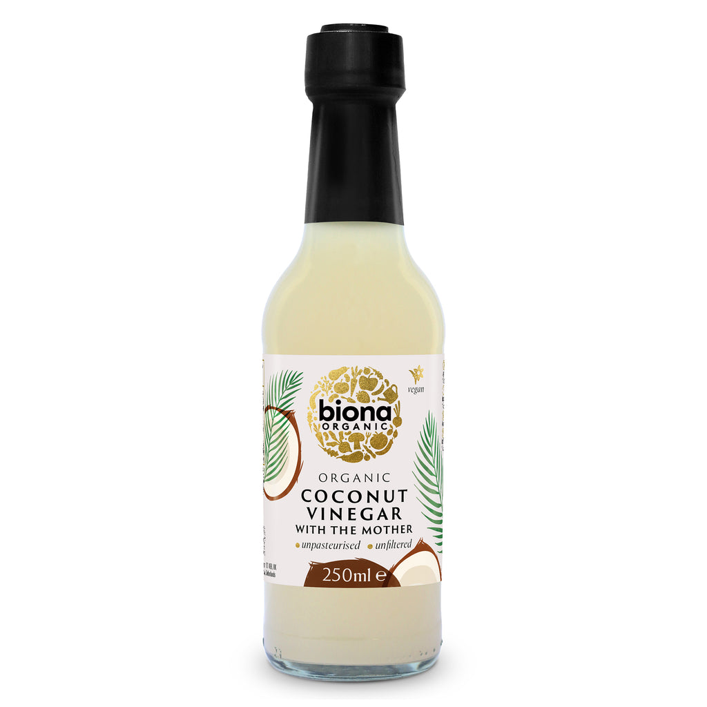 "Simply swap ordinary white wine vinegar for our raw, and unfiltered, organic coconut vinegar with the mother. Derived from the sap of coconut trees, this vinegar boasts a unique coconutty flavour and subtle sweet aroma. Perfect for creating flavoursome salad dressings, sauces, and marinades, this versatile coconut vinegar is a refreshing must have addition to any store cupboard."