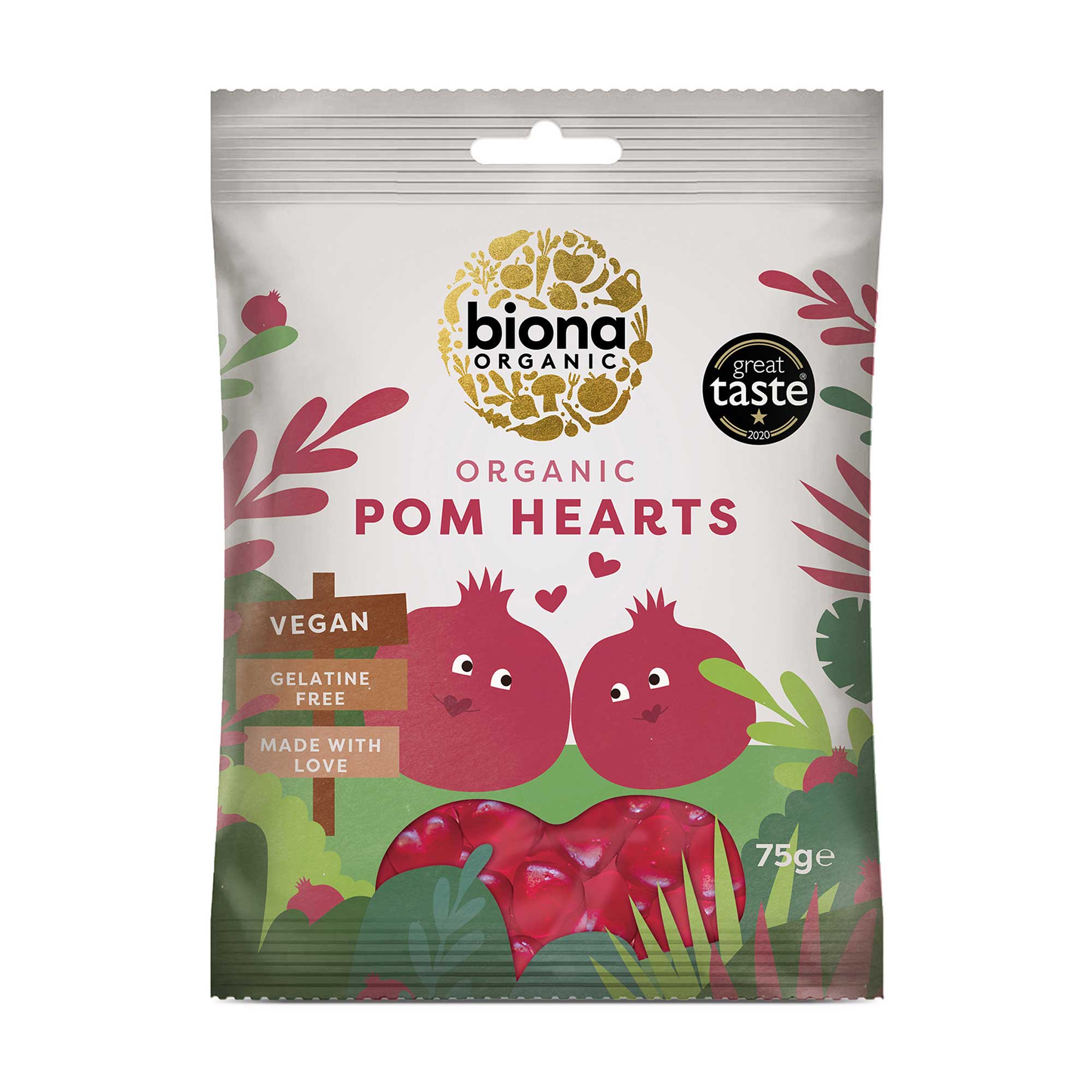 "The irresistible Biona Pomegranate Hearts contain real Pomegranate Juice; perfect for sharing and not just for valentines! These tasty organic treats contain no artificial additives, flavourings or colourings, are made without gelatine and are gluten free! Suitable for vegans and vegetarians. Enjoy these fresh fruity flavours full to the brim with natural taste."