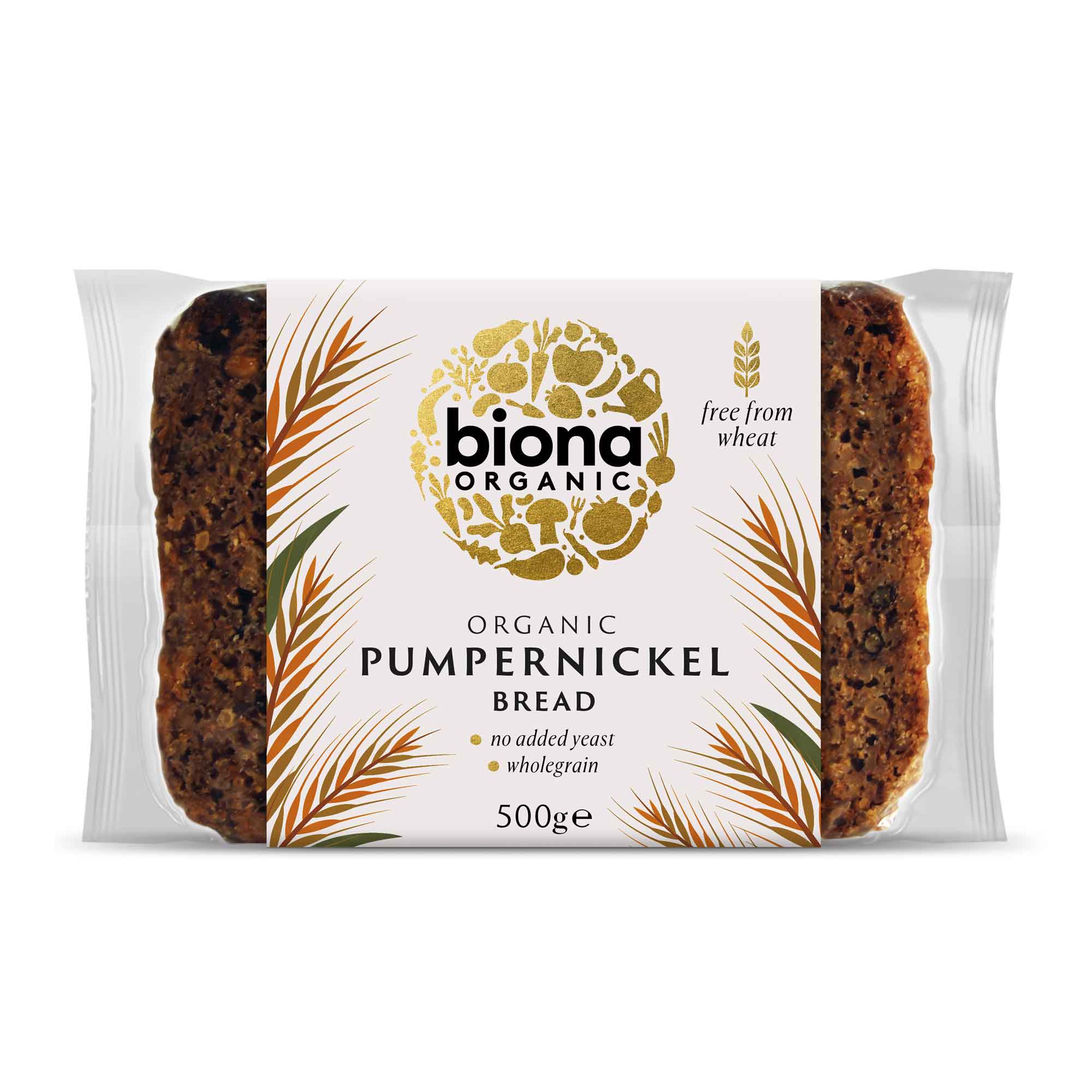 "Biona Organic Pumpernickel Bread is traditionally made in Germany by organic bakers. It is crammed full of crunchy, nutty wholegrains which are an essential part of a healthy, fibre-rich diet. Pumpernickel is made from wholemeal rye by grinding the whole rye berry and baking it very slowly until it caramelises, giving it its distinctive flavour and colour. "