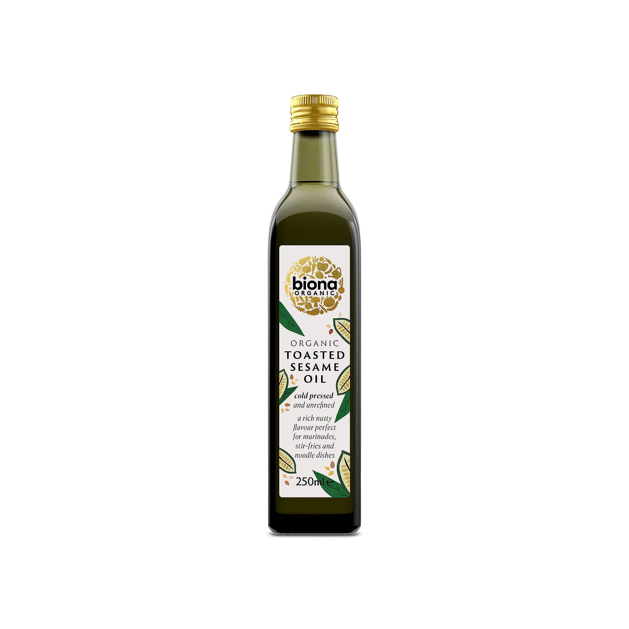 "A versatile Toasted Sesame Oil, made from organically grown sesame seeds that are gently toasted before they are cold pressed to naturally extract the oil."