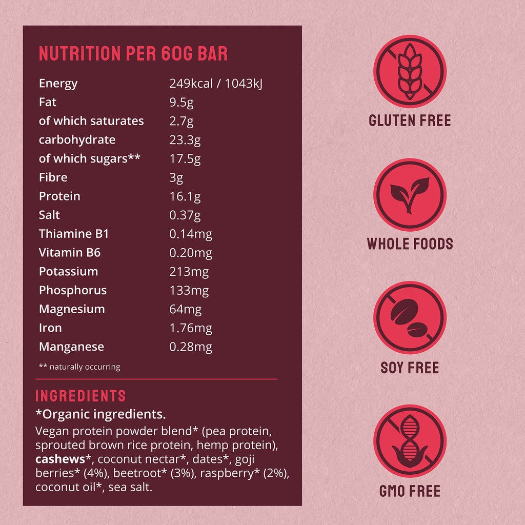 BodyMe Organic Beetroot Berry Vegan Protein Bar 60g