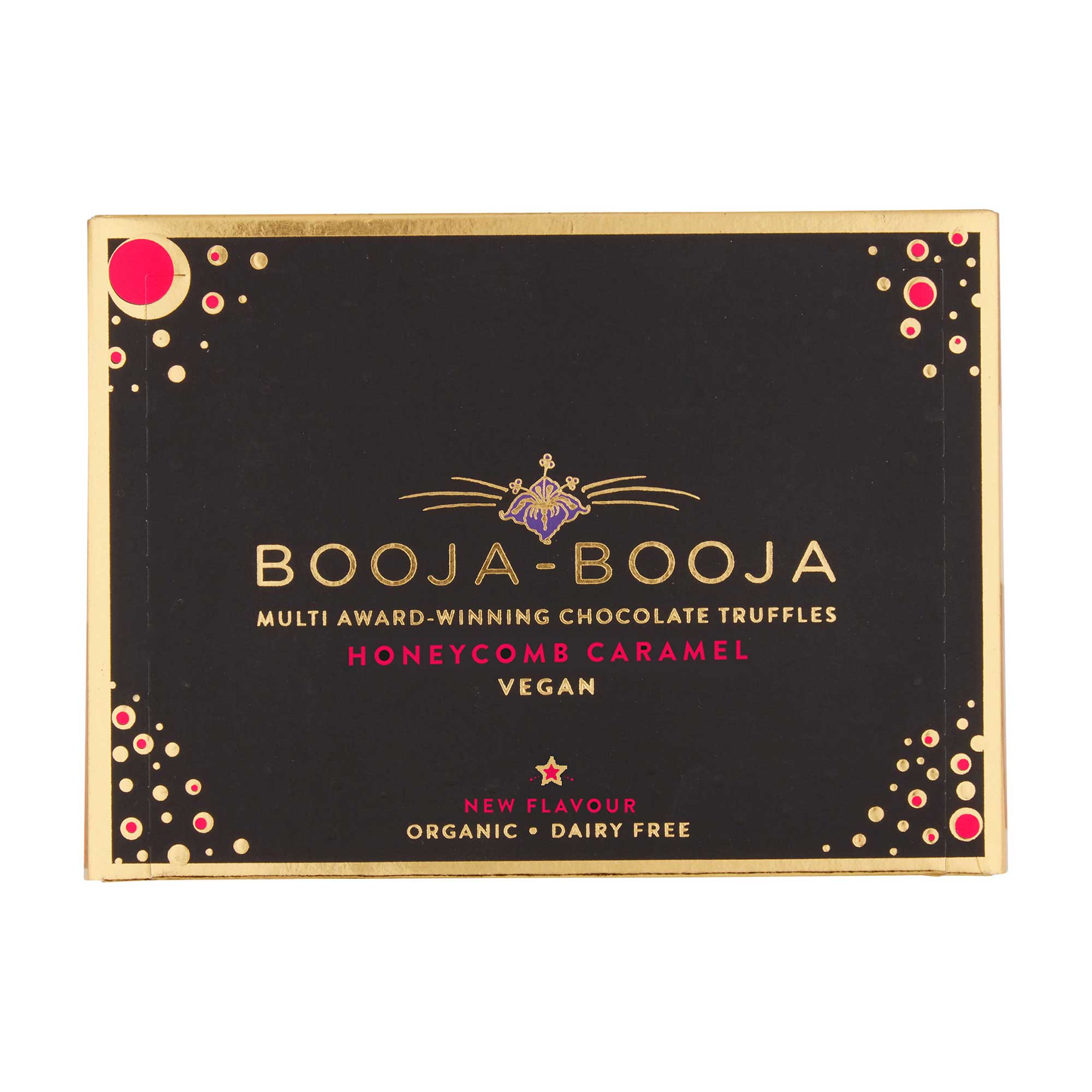 "Eight delicious chocolate truffles with the full scrunch of our special caramel honeycomb. Created from simple, carefully chosen, vegan and organic ingredients."