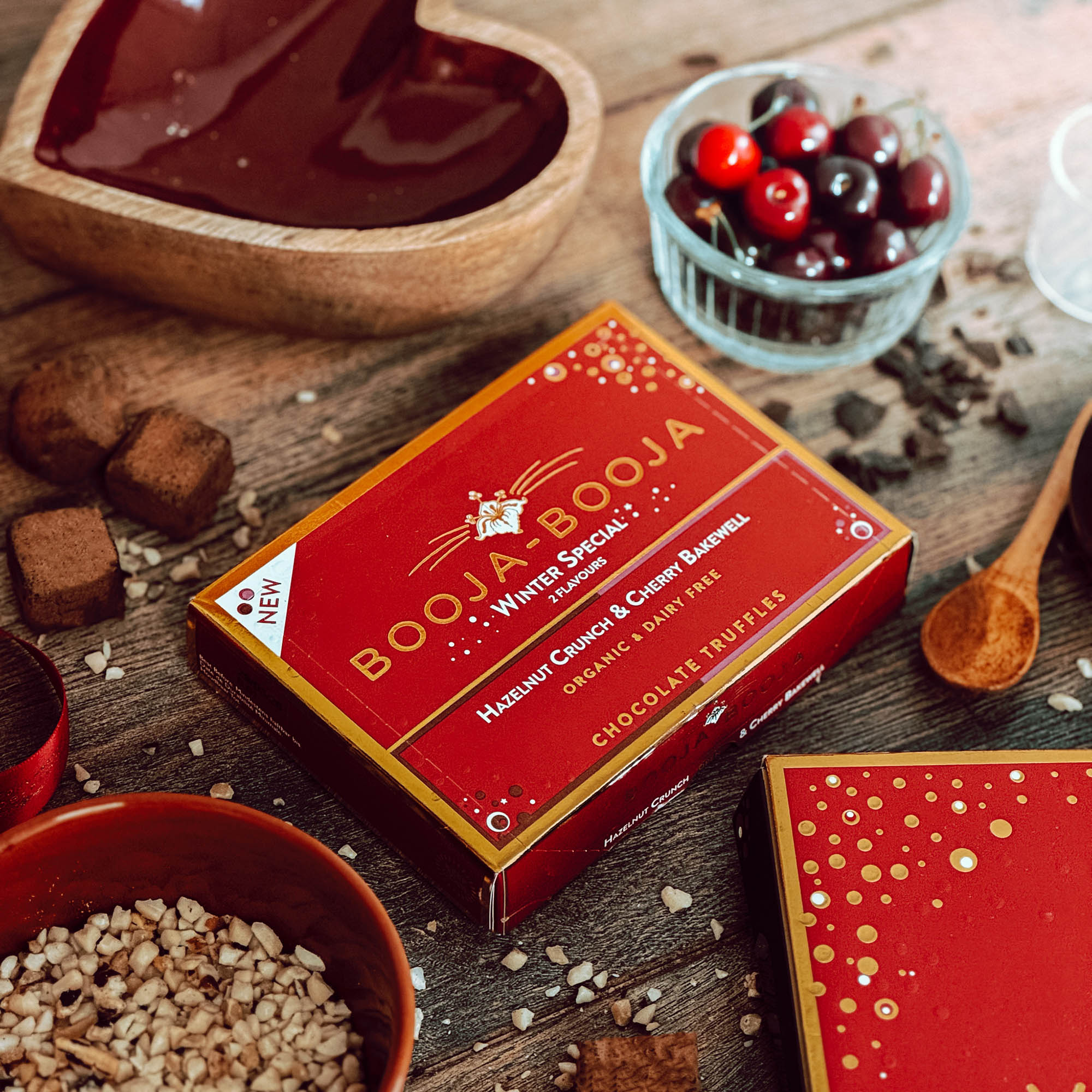 BoojaBooja Winter Special Hazelnut Crunch & Cherry Bakewell Eight Truffle Pack 92g