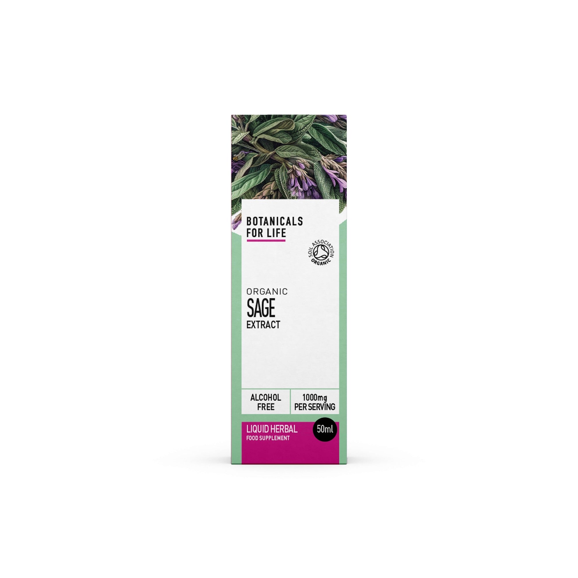 "Sage is believed in folklore to ward off negative energies and promote wisdom. The ancient Greek physicians Dioscorides and Galen recommend sage for wound healing, female health, and as a diuretic.Organically certified and sustainably sourced, Botanicals For Life Sage undergoes gentle extraction and is suspended in glycerine, ensuring a natural approach to wellbeing.Organic Sage Extract is rich in key compounds to support female health, cognitive health and emotional wellbeing."