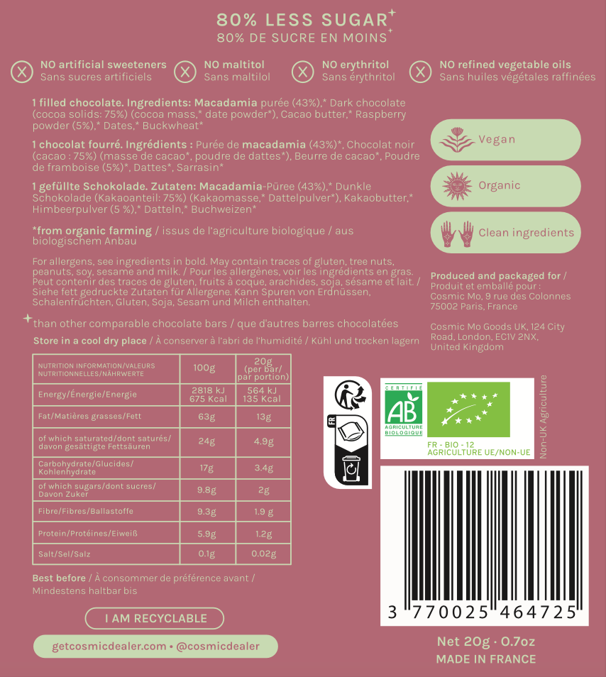 Cosmic Dealer Nut Butter Chocolate: Raspberry & Buckwheat - Abundance 20g