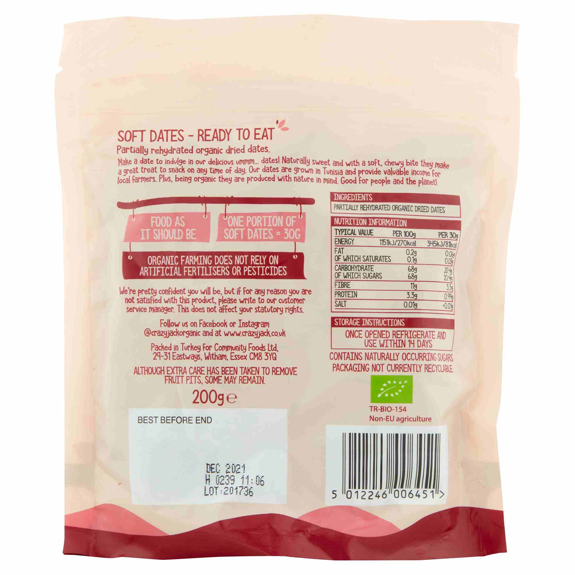 https://www.planetorganic.com/products/crazy-jack-organic-ready-to-eat-soft-dried-dates-250g5756791357597Crazy Jack Organic Soft Ready to Eat Dates 200g3.00//www.planetorganic.com/cdn/shop/files/11564_NEW.jpg?v=1748519499//www.planetorganic.com/cdn/shop/files/11564_NEW_large.jpg?v=1748519499GBPInStockStandard222197514397Food Cupboard Essentials306241339549Free From282091978909Low Sugar Products281575850141Low Sugar Snacks220891578525Organic Nuts, Seeds & Dried Fruits670622318978Summer SnackingSource of fibreCrazy JackCATEGORY:Dried FruitsDIETARY:Gluten FreeDIETARY:Low SugarDIETARY:OrganicDIETARY:RawDIETARY:VeganDIETARY:VegetarianDIETARY:Wheat FreeMERCH:Snackingadd-to-cart//www.planetorganic.com/cdn/shop/files/11564_2_NEW.jpg?v=1748519499//www.planetorganic.com/cdn/shop/files/11564_3_NEW.jpg?v=1748519499//www.planetorganic.com/cdn/shop/files/11564_4_NEW.jpg?v=1748519487//www.planetorganic.com/cdn/shop/files/11564_5_NEW.jpg?v=174851948756027825373570115643.00//www.planetorganic.com/cdn/shopifycloud/storefront/assets/no-image-2048-a2addb12.gifhttps://www.planetorganic.com/products/crazy-jack-organic-ready-to-eat-soft-dried-dates-250g?variant=56027825373570InStock11564