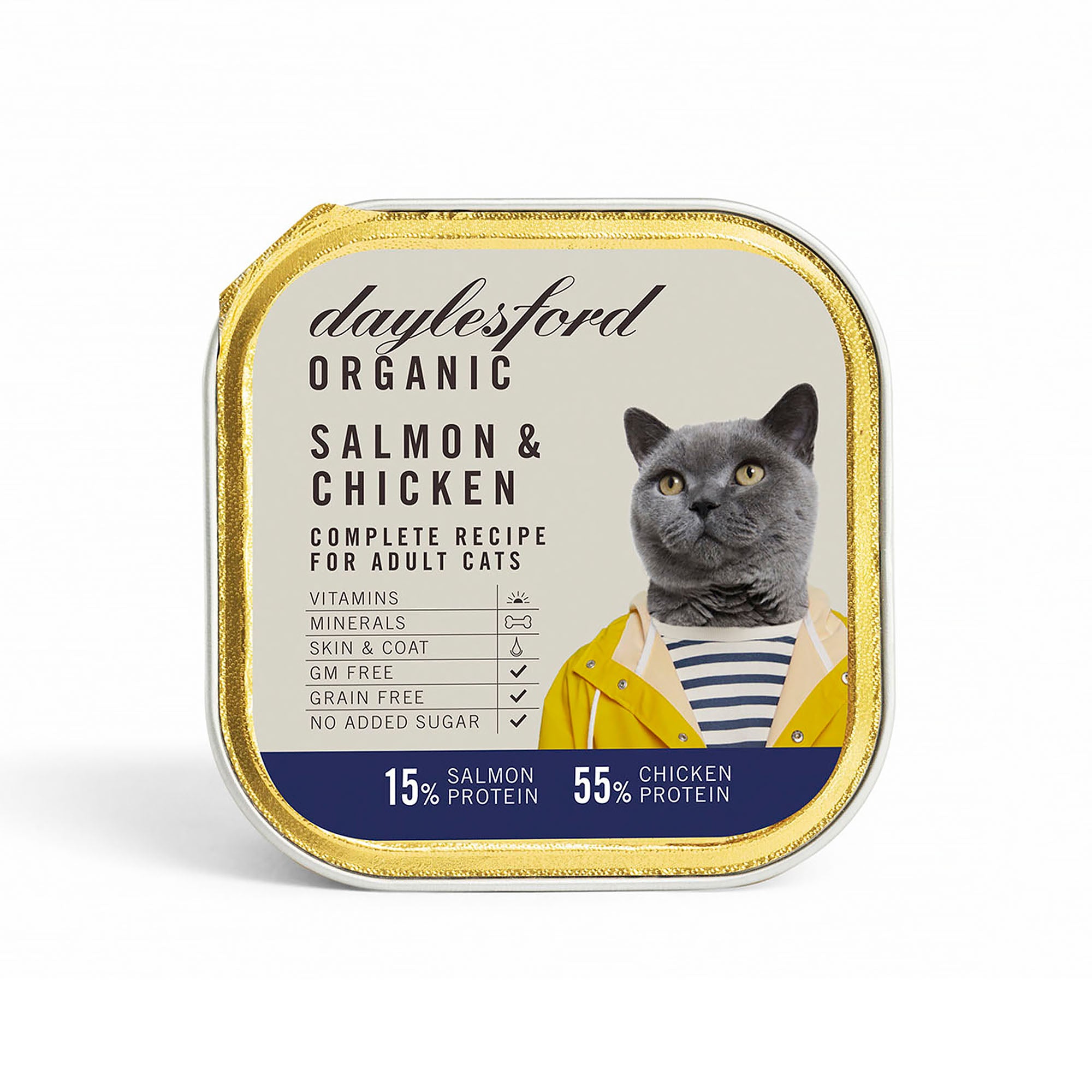 Notify Me When AvailableMade with organic chicken and salmon. Complete recipe for adult cats. Daylesford's own nutritious high protein chicken and salmon cat food for adult cats.