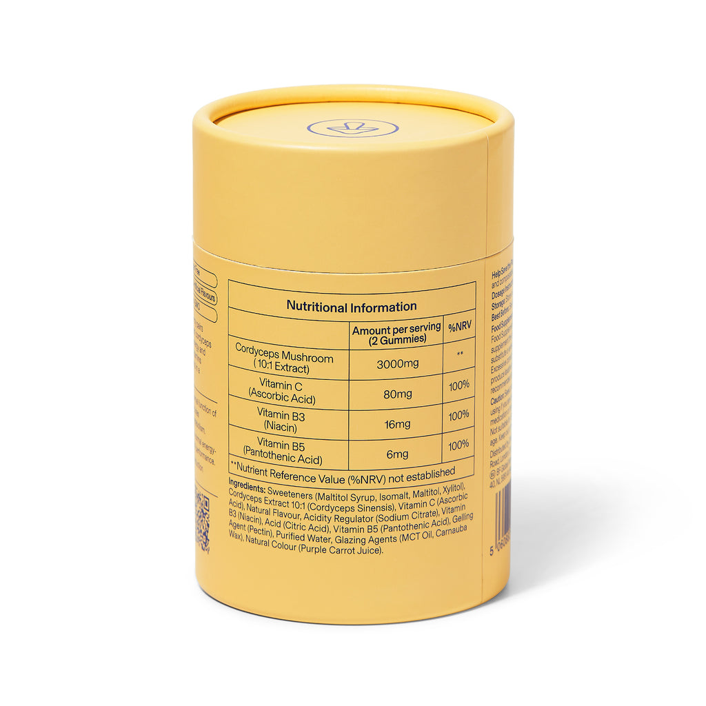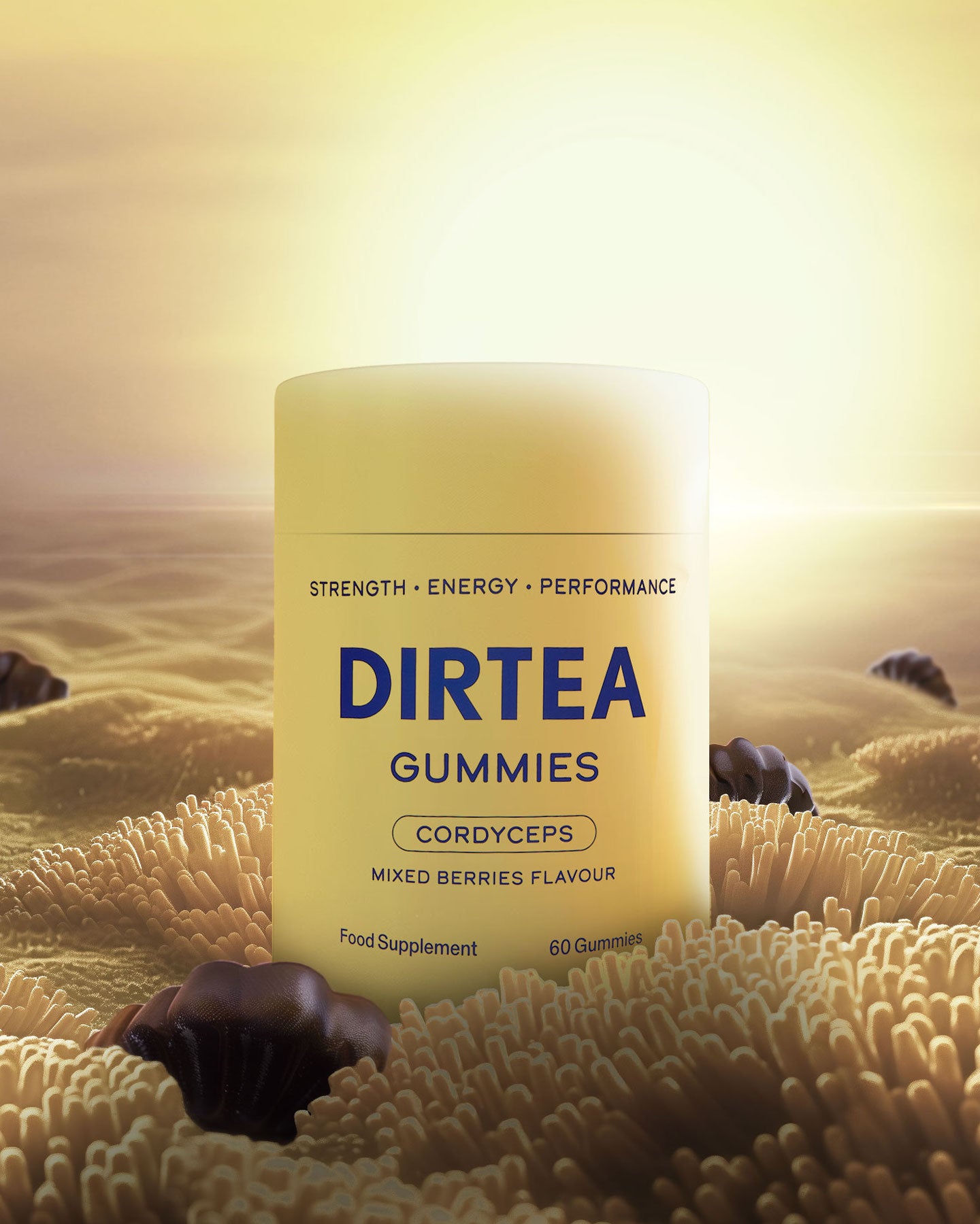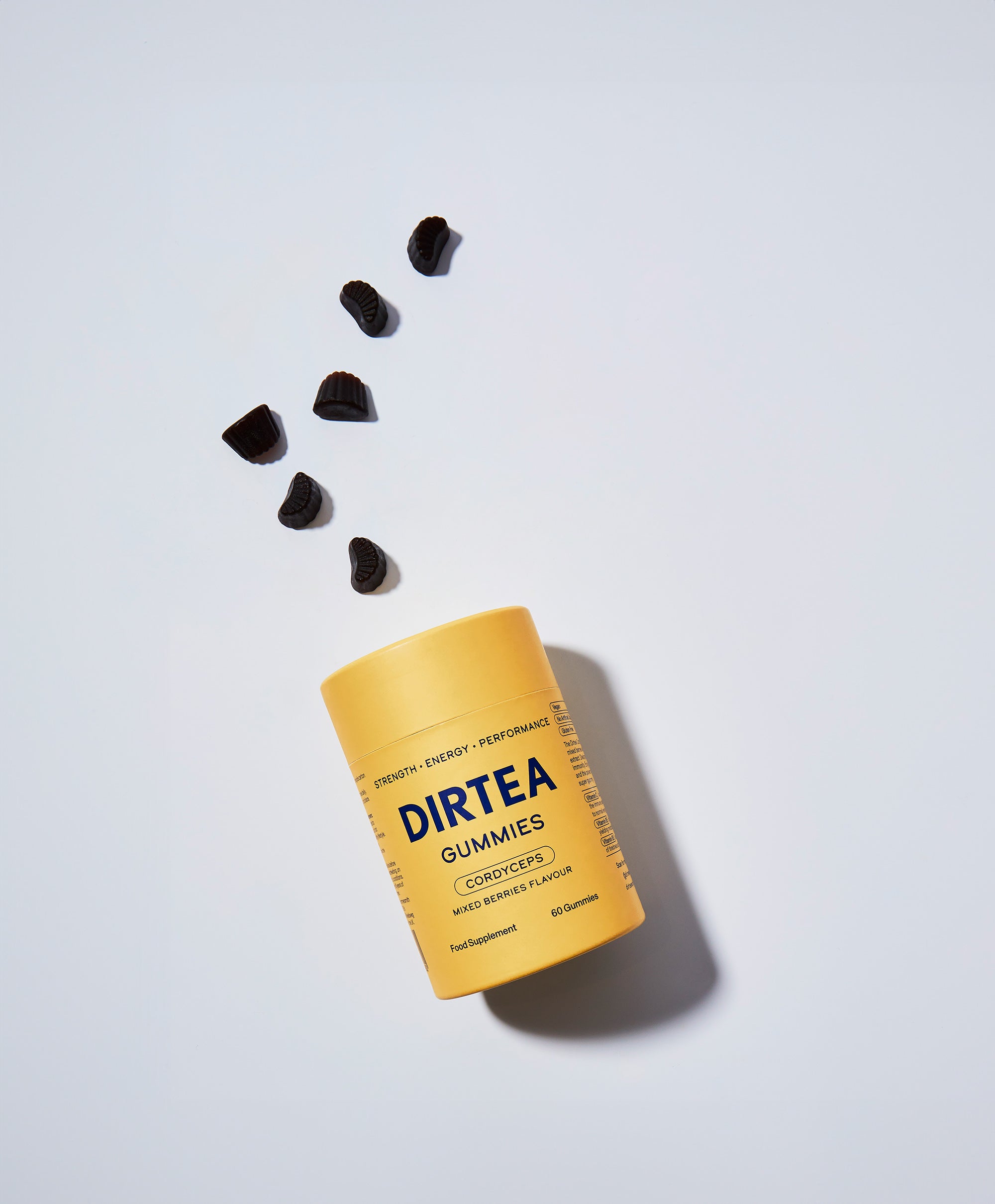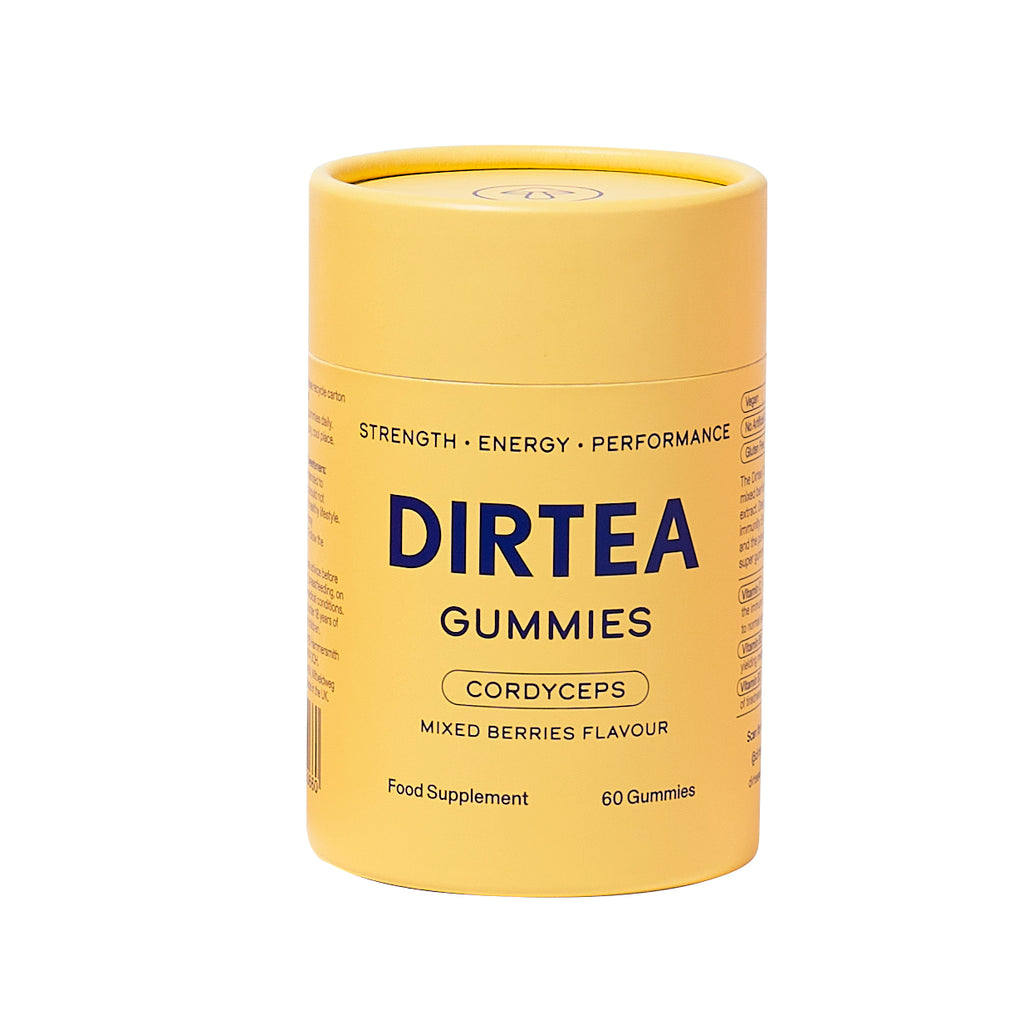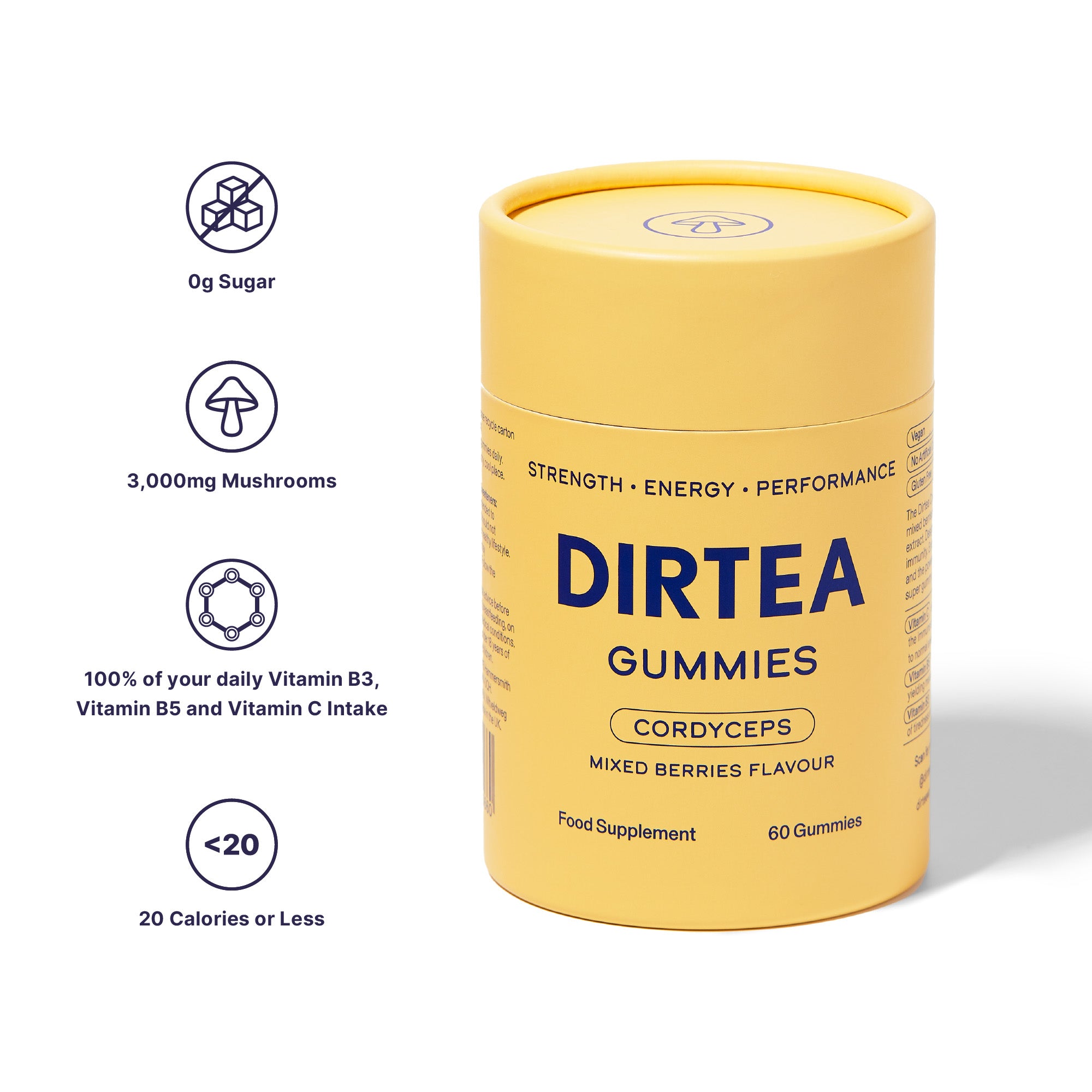 The Dirtea Cordyceps Gummy pairs mixed berries with the purest Cordyceps extract. Designed for your energy and immunity. Enjoy your daily vitamins and the power of mushrooms in a super gummy. Vitamin C helps the normal functioning of the immune system during and after intense physical exercise. Vitamin B5 contributes to normal energy-yielding metabolism. Vitamin B3 supports the reduction of tiredness and fatigue.