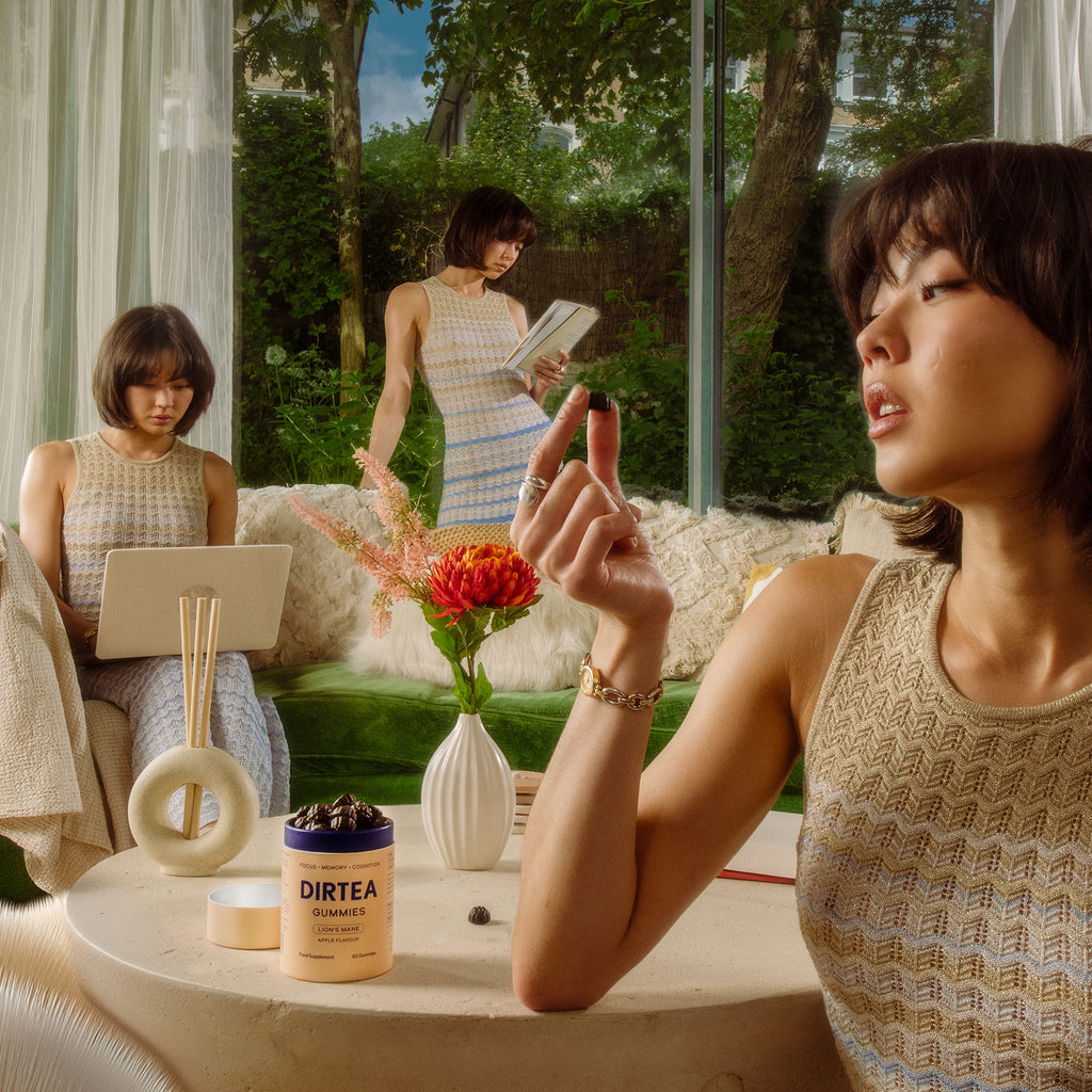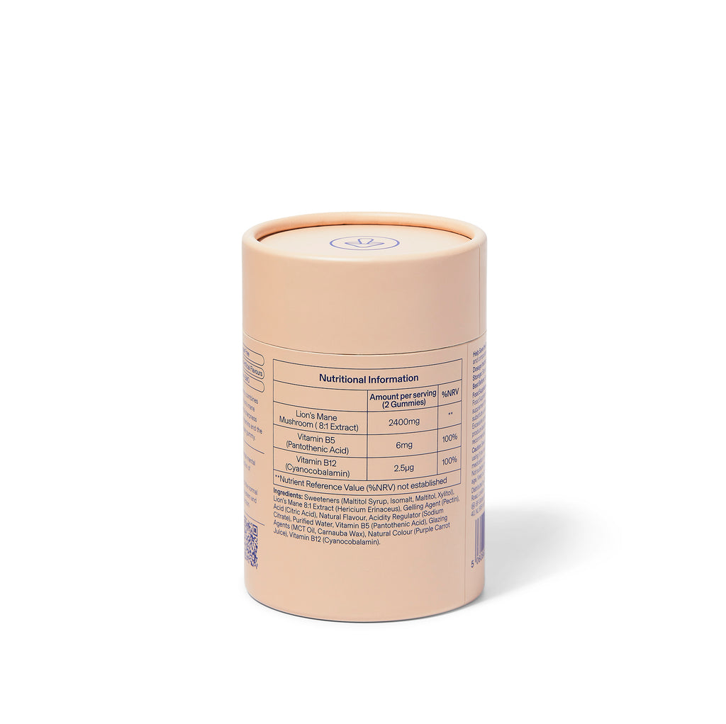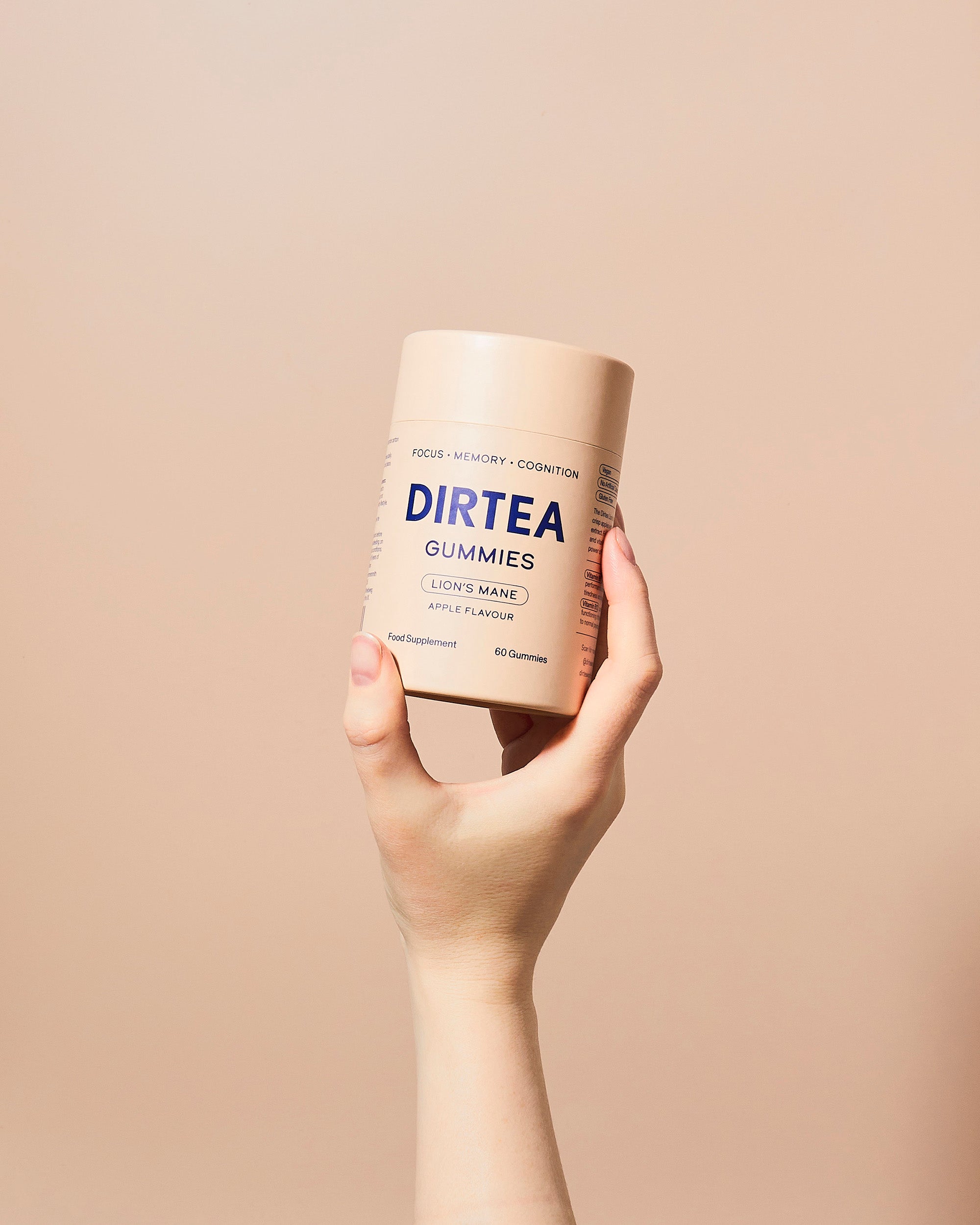 The Dirtea Lion’s Mane Gummy combines crisp apples with the purest Lion’s mane extract. Formulated for mental sharpness and vitality. Enjoy your daily vitamins and the power of mushrooms in a super gummy. Vitamin B5 supports normal mental performance and the reduction of tiredness and fatigue. Vitamin B12 contributes to the normal functioning of the nervous system and to normal psychological function.