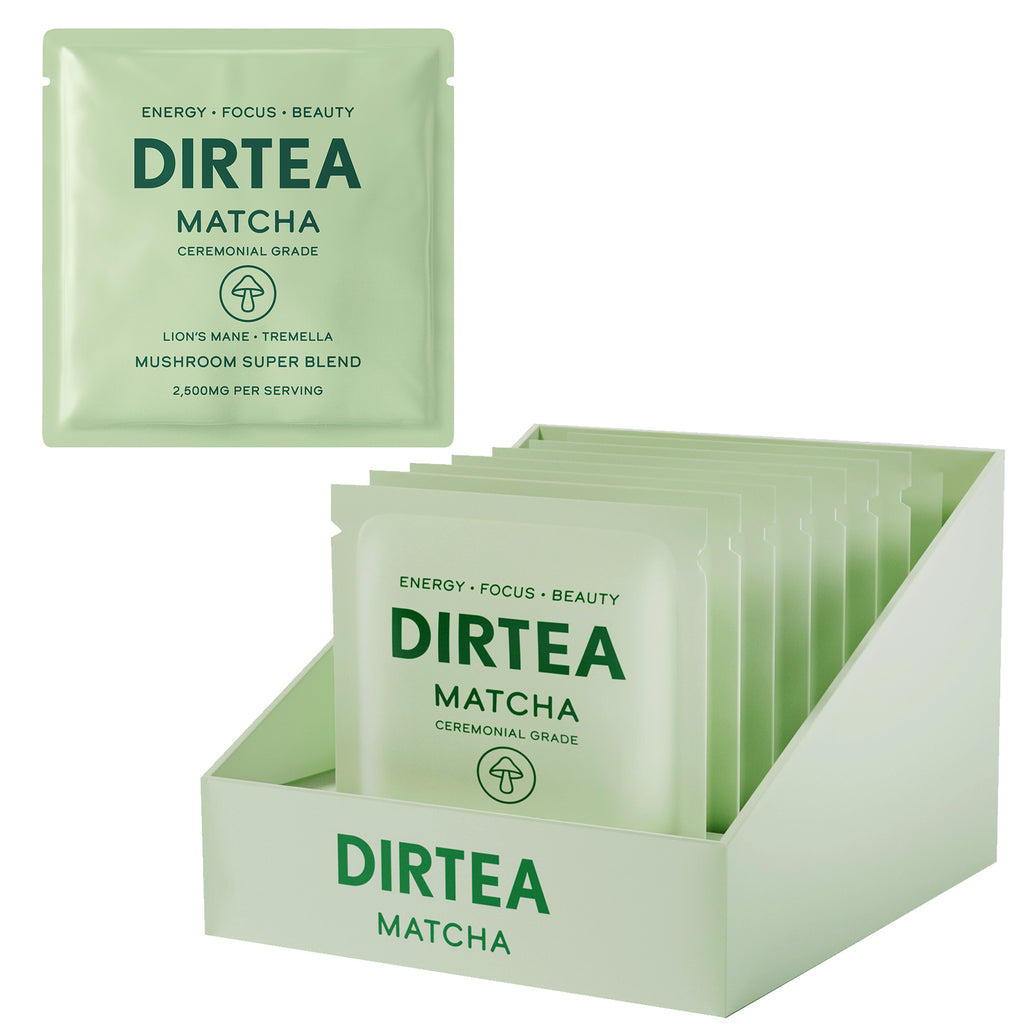 "DIRTEA Matcha enhances focus, energy, and supports the nervous system. Made with 100% pure ceremonial-grade Japanese matcha and infused with brain-boosting Lion's Mane and hydrating Tremella mushroom extracts. Enjoy this balanced, velvety blend, providing steady energy and calm focus.DIRTEA Matcha is fortified with an organic B vitamin complex, including B6, B12, Biotin, and Pantothenic Acid, to support psychological function, the nervous system, boost energy levels, and enhance hair, skin, nails.Naturally supports energy levels and enhances focus2,500mg of functional mushrooms per serving100% organic dual-extracted fruiting bodiesDAKKS certified lab tested180g, 30 servings, 6g serving sizeHigh in B6, biotin, B12 and pantothenic acidFeel the difference with DIRTEA. Elevate your days, energise your mind, and stay focused naturally."