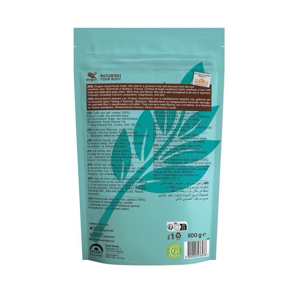 Dragon Superfoods pure coarse sea salt from the French shores. It is: Produced by a traditional method; Rich in minerals