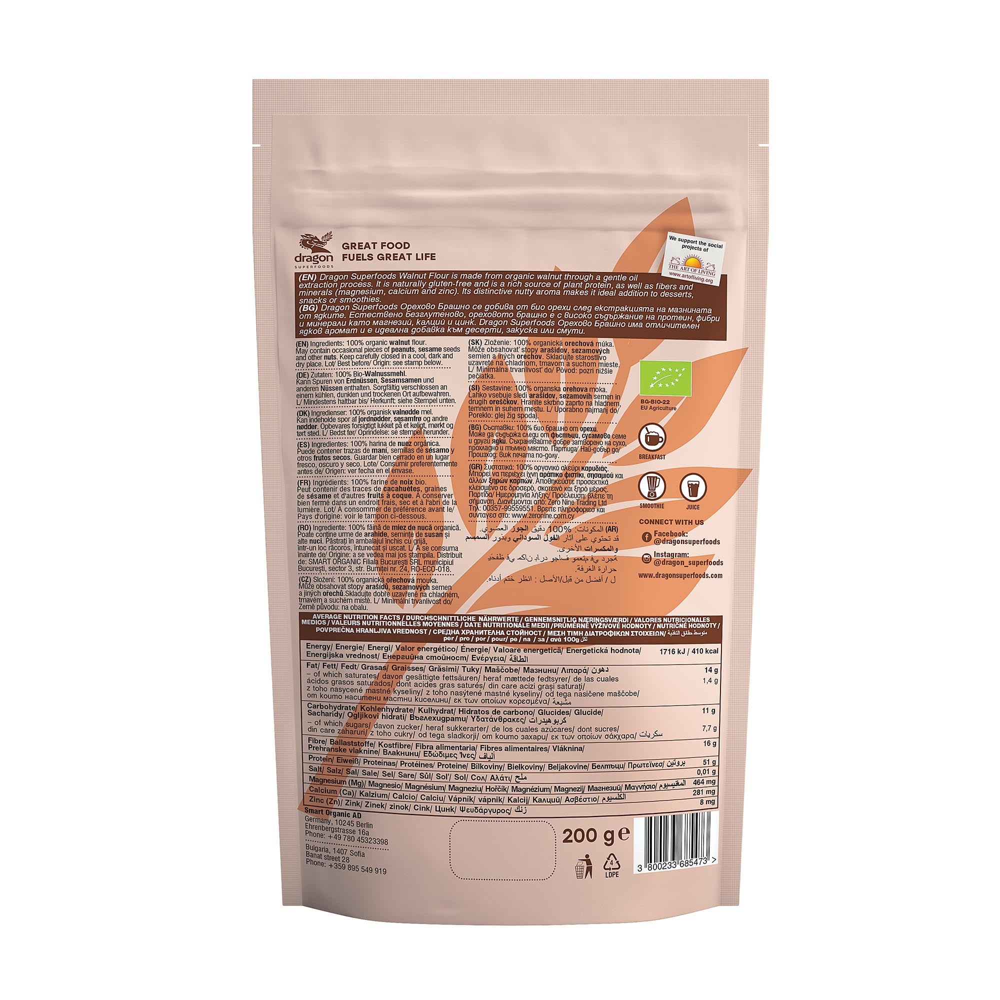 "Dragon Superfoods Walnut Flour is made from organic nuts, rich in protein, minerals and fibres."
