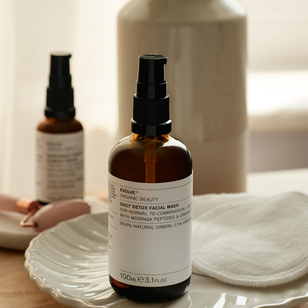 "A delicately foaming facial wash to detoxify and rebalance normal to combination/oily skin. Natural sugars cleanse away impurities, organic papaya enzymes exfoliate, and organic aloe vera softens, leaving skin clean, smooth and supple. Natural Goji Berry extract and Moringa Peptides defend against pollution."