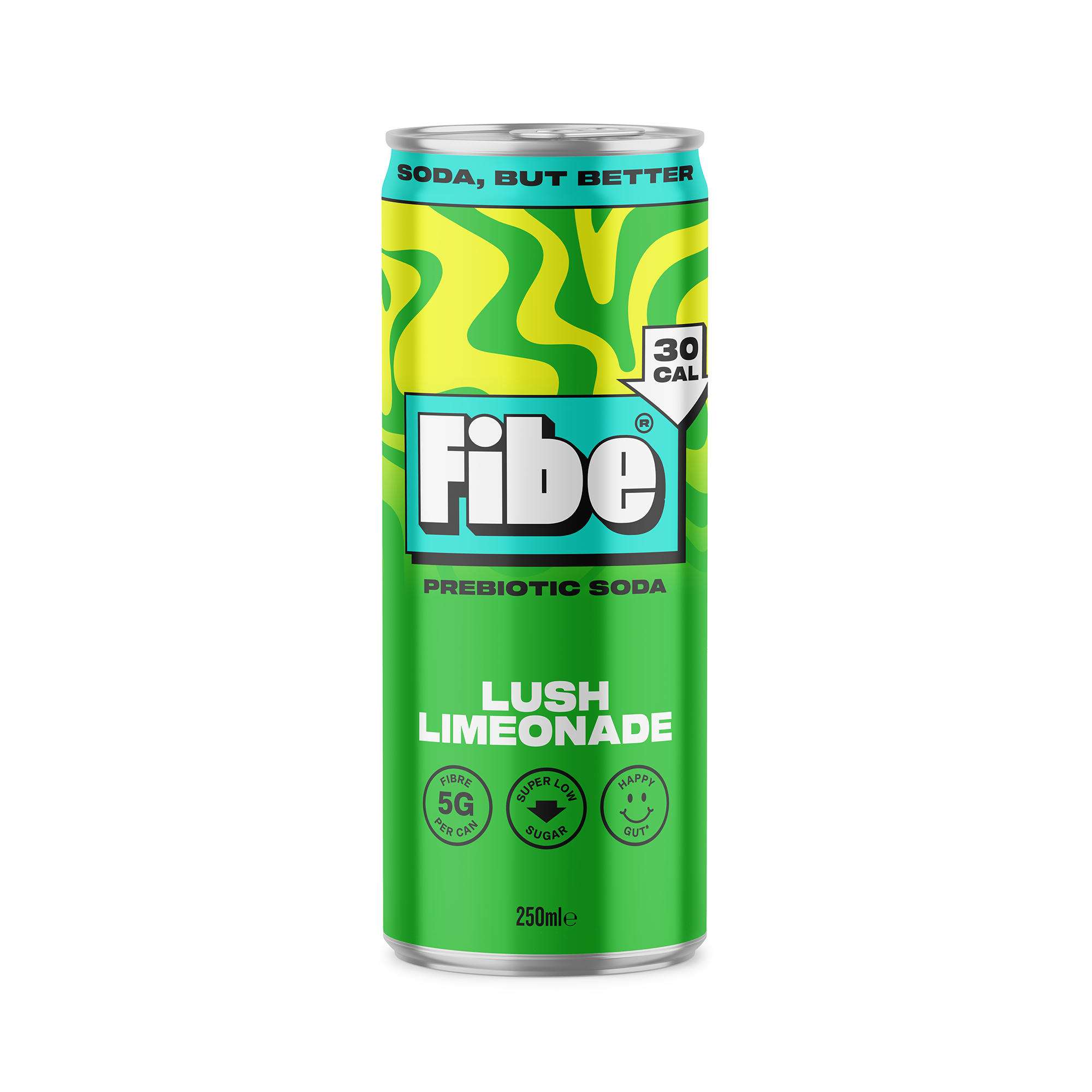 "Lush lemony-lime freshness in a can. Your classic lemonade reimagined for the modern day, with 5g of gut-loving prebiotic fibre to support digestive health. Super low sugar, only 30 calories per can. This is soda, but better. "