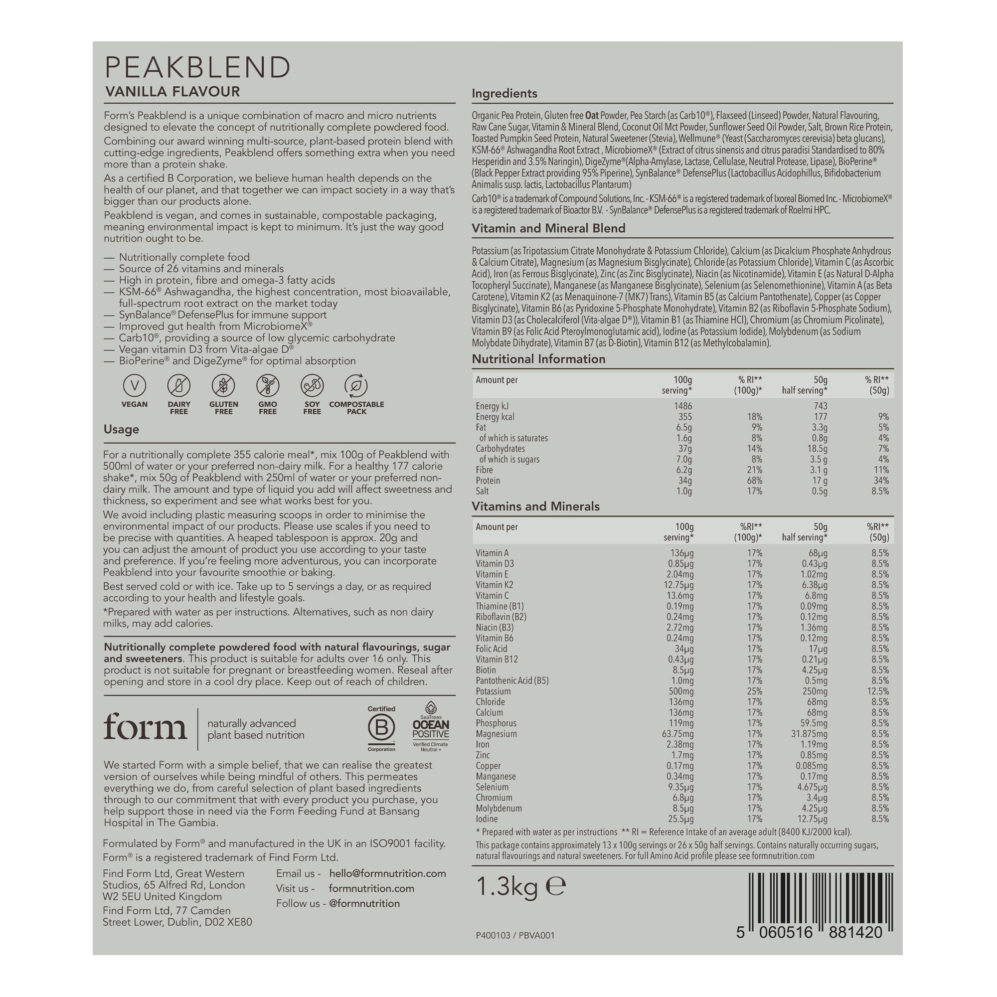"Life can get busy, and sometimes you need more than a protein shake. Peakblend reimagines Form's award-winning vegan protein and adds everything you need to create a perfectly balanced, great-tasting, nutritionally complete vegan meal replacement."