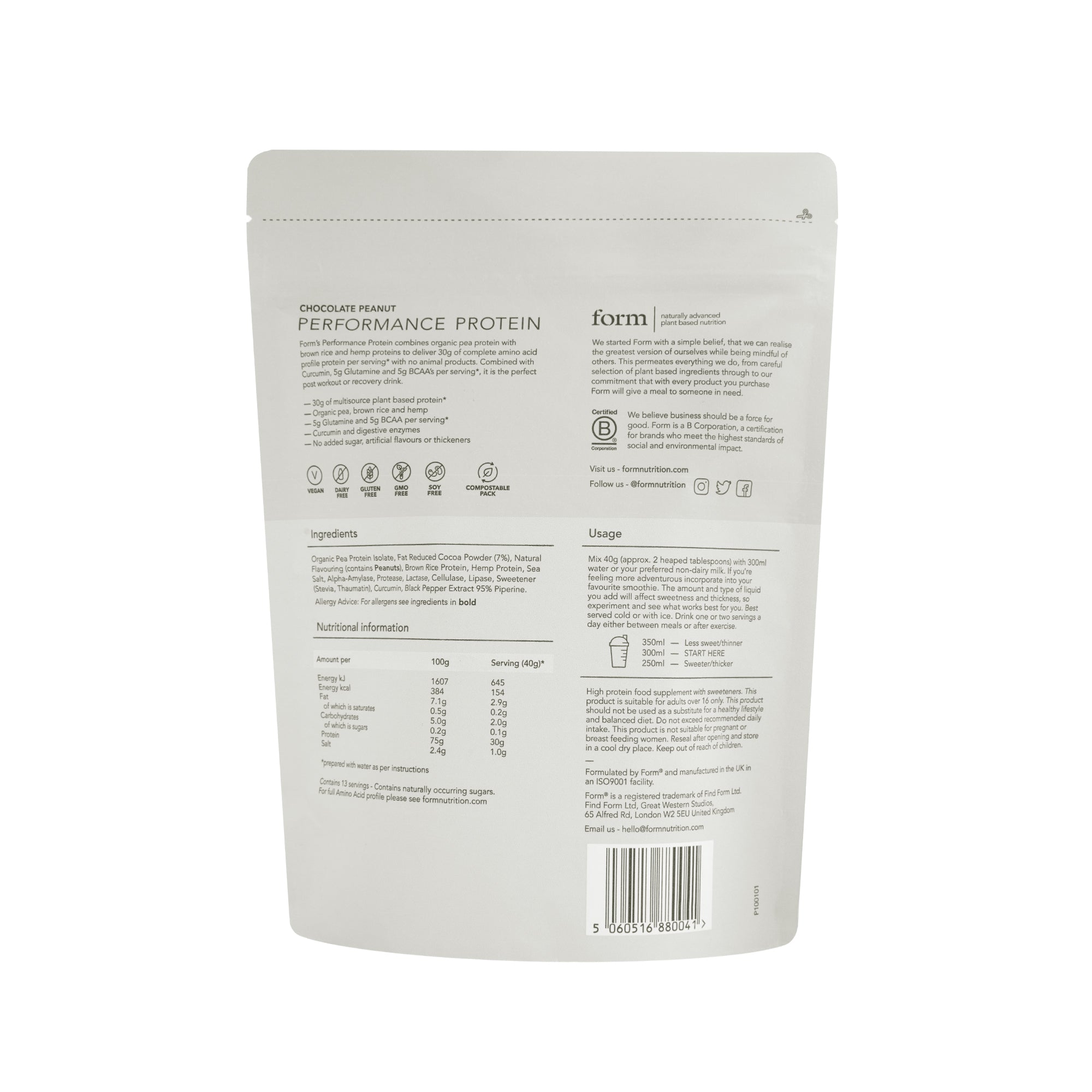 Discover Form Performance protein chocolate peanut flavour at Planet Organic. Form Performance Protein is animal product free combining organic pea protein with brown rice, hemp and AlgaVia® whole algae protein to deliver 30g of complete amino acid profile per serving of tasty chocolate protein. Combined with Curcumin C3 and 5g BCAA’s per serving, it provides the perfect chocolate peanut flavour post-workout or recovery drink complete with probiotics. You can buy it here at Planet Organic.