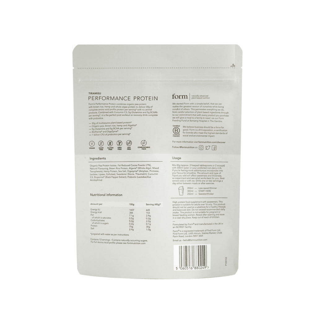 Form’s Performance Protein combines organic pea protein with brown rice, hemp and AlgaVia® whole algae protein to deliver 30g of complete amino acid profile protein per serving with no animal products. Combined with Curcumin C3 and 5g BCAA’s per serving, it is the perfect post workout or recovery drink complete with probiotics.