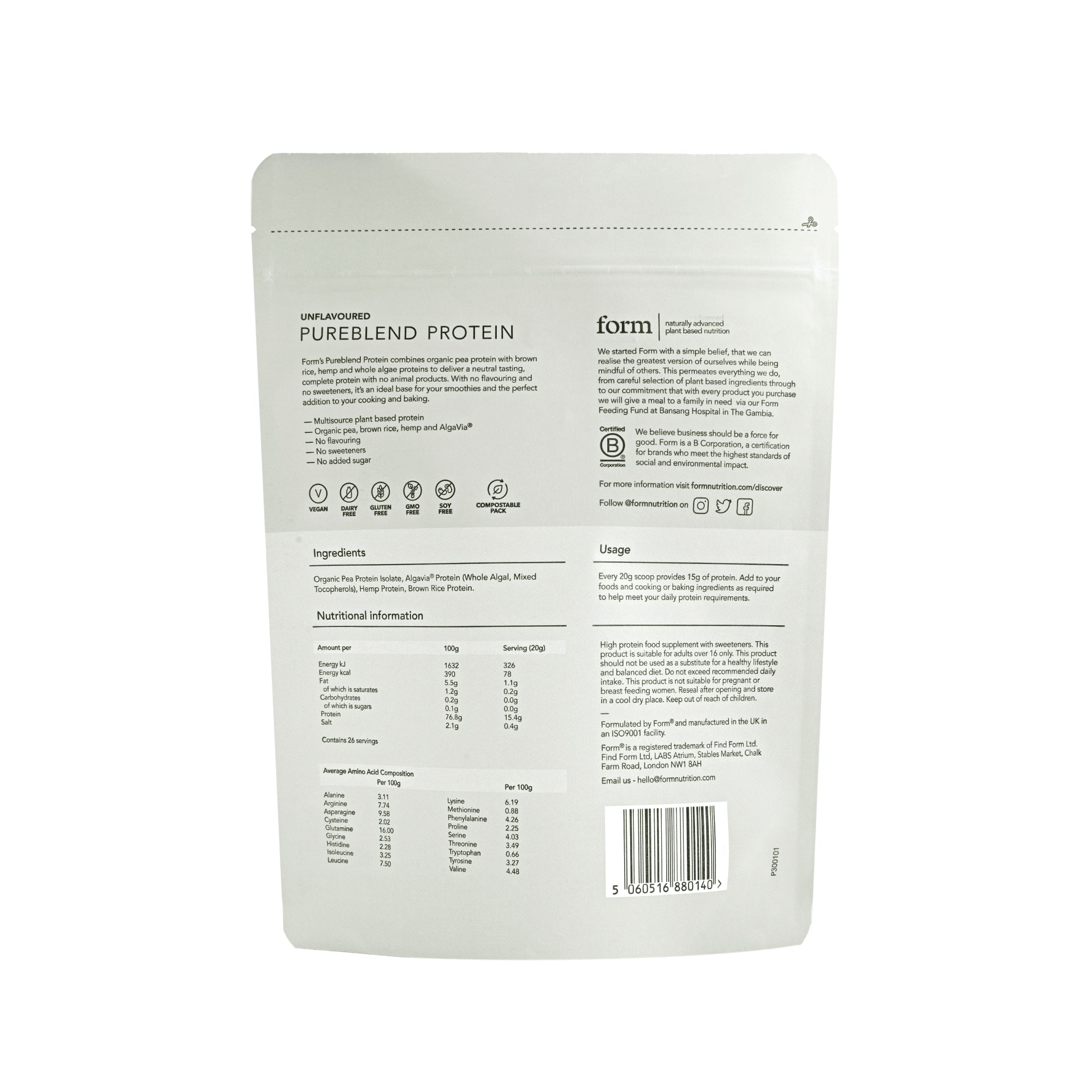 "Form’s Pureblend Protein Powder rises to the challenge of your active and busy lifestyle by redefining the “protein shake”. A base of organic pea protein with brown rice, hemp and AlgaVia® whole algae proteins delivers a complete amino acid profile with no animal products. It combines maca, flaxseed, a blend of greens and fruit powders, fibre, prebiotics and probiotics. You can buy unflavoured, unsweetened protein powder and other Form Nutrition products at Planet Organic here."