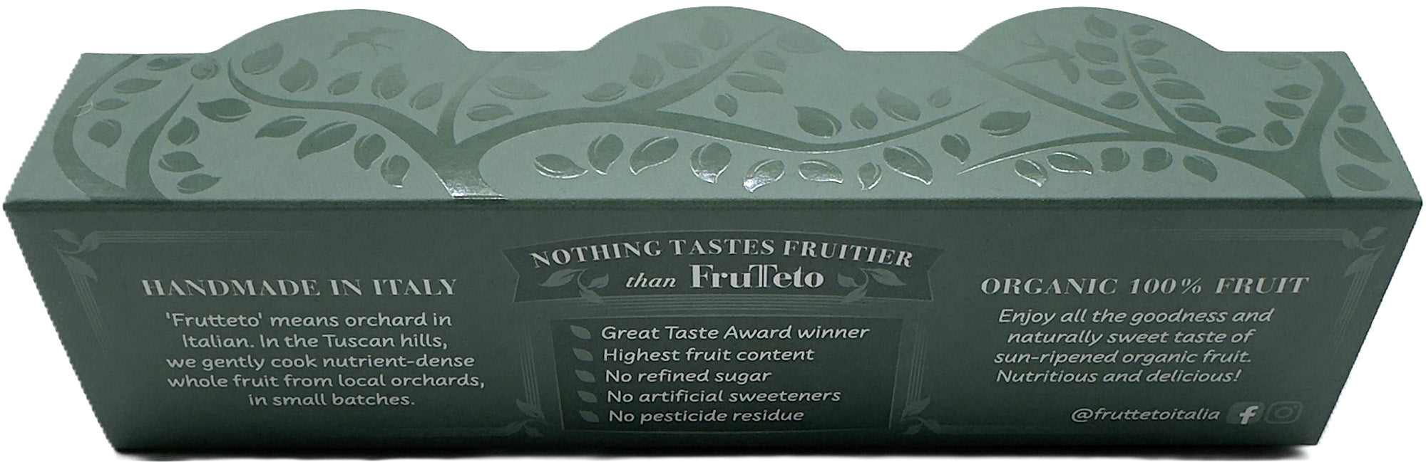 Notify Me When AvailableLooking for a stocking filler without the festive sugar overload? Handmade in Tuscany, this attractive gift set features three Great Taste Award-winning 100% fruit spreads: Apricot, Strawberry and Blueberry. An ideal gift for health-conscious food lovers, or anyone who enjoys adding a little sunshine to their breakfast table, even in winter.‘Frutteto’ means orchard in Italian. It’s in the Tuscan hills that these organic spreads are cooked gently at low temperatures, in small batches, using sun-ripened whole fruit. There’s no refined sugar, no artificial sweeteners, just the natural sweetness of real fruit.Thanks to their uniquely high whole fruit content, they’re the only fruit spreads to provide a natural source of fibre.All fruit used is certified organic and rigorously tested to ensure it’s free from PFAS, pesticide, and chemical residues.A festive, feel-good gift. Perfect for toast, porridge, cheese boards, or simply spreading a little joy.