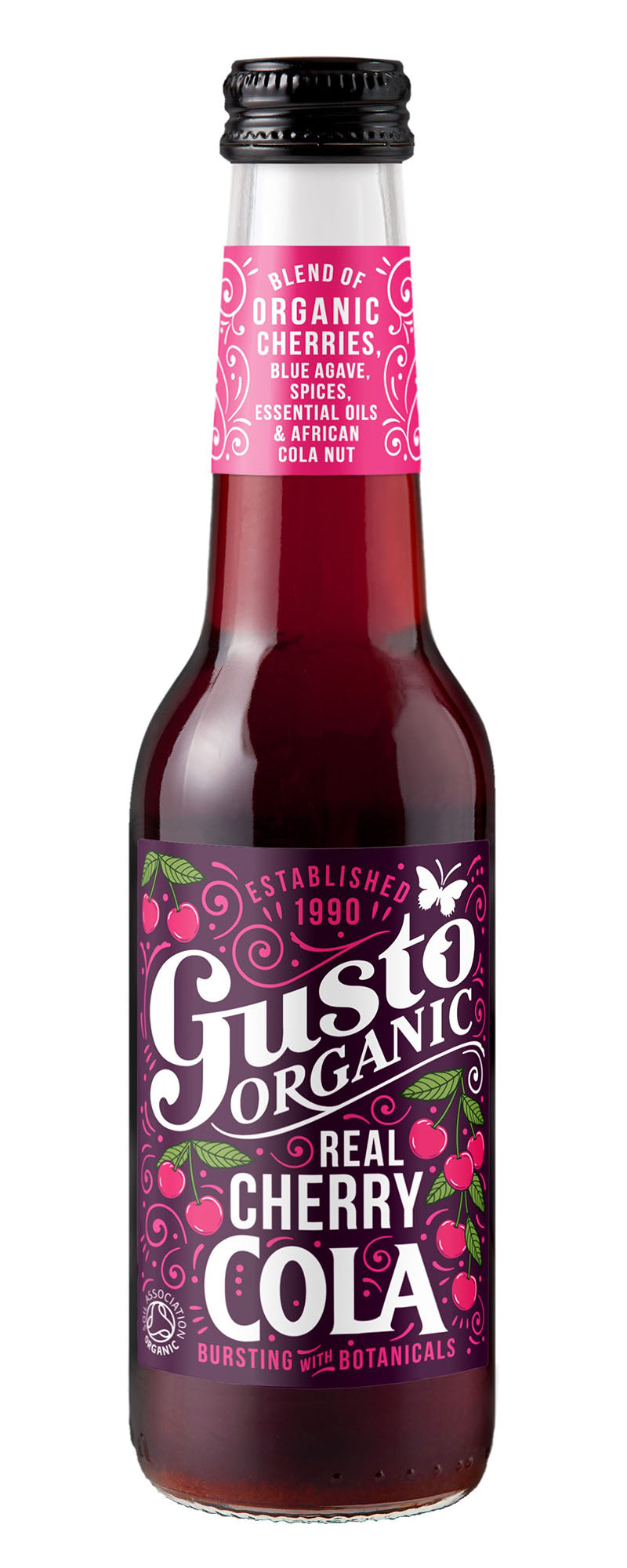 The only Organic certified cherry cola on planet earth, Gusto have blended organic cherry juice with spices, essential oils, African cola nut and Fairtrade Madagascan vanilla to create and indulgent and evocative treat, free from refined sugar, sweetened with Fairtrade organic agave.