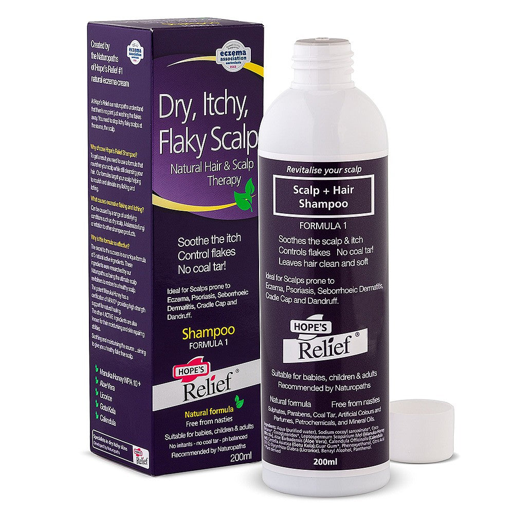 "Hope's Relief Herbal Shampoo is for sensitive and dry skin. It is unscented and sulfate free. Organic herbal extracts, vitamins and Manuka Honey are combined with the gentlest cleansers to relieve dry and flaky scalp conditions."