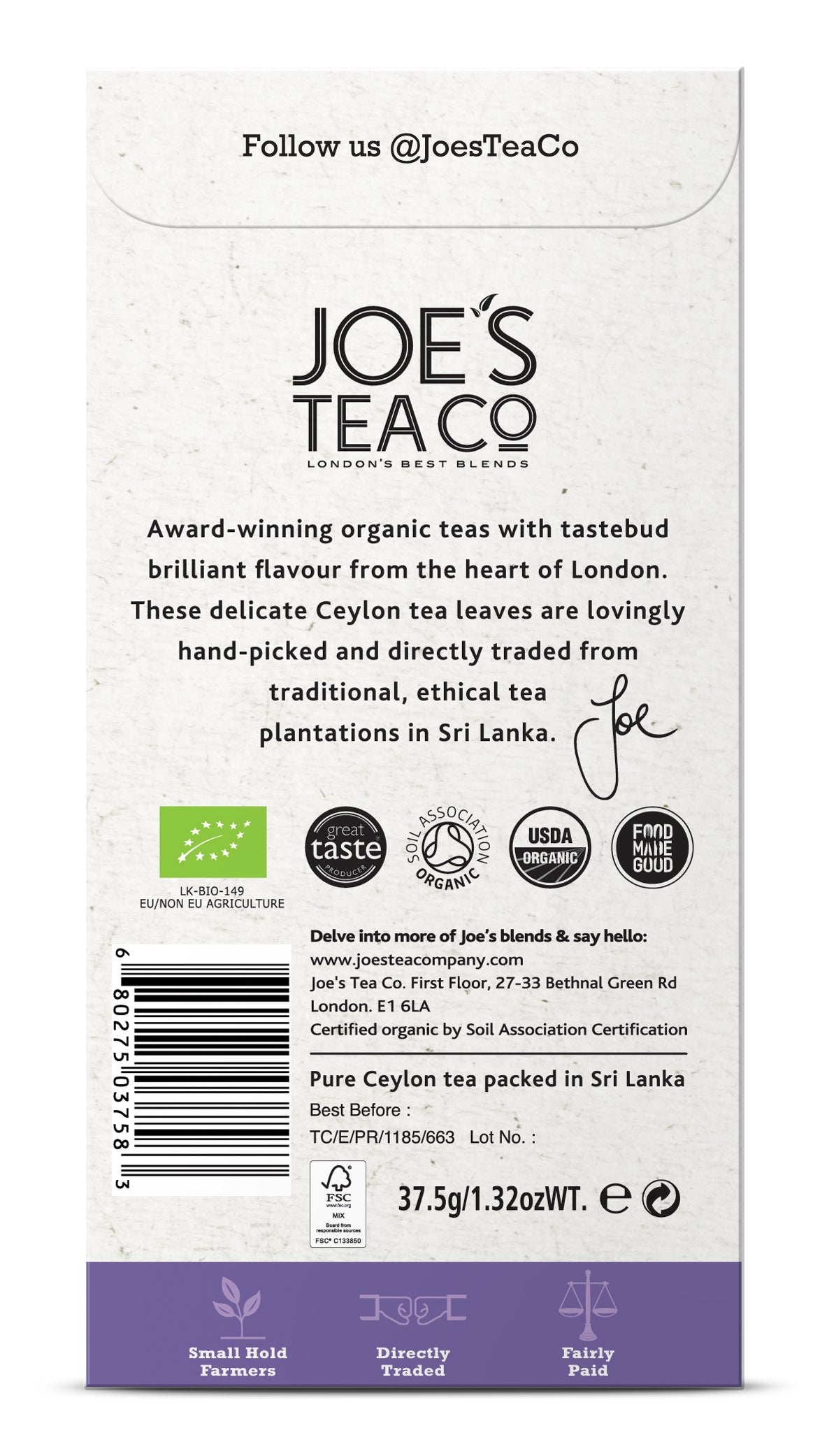 https://www.planetorganic.com/products/joes-tea-co-the-earl-of-grey-15x-biodegradeable-pyramid-bags-15-bags8351910428829Joe's Tea Co. The Earl of Grey 15x Biodegradeable Pyramid Bags 15 bags3.15//www.planetorganic.com/cdn/shop/files/18671.jpg?v=1720079257//www.planetorganic.com/cdn/shop/files/18671_large.jpg?v=1720079257GBPInStockStandard291112583325All Food & Drink220181889181All products310250537117All Special Offers229849989277Food & Drink Offers222197514397Food Cupboard Essentials306241339549Free From309555232925Low Sugar Food & Drink282091978909Low Sugar Products276948680861New In Keto Products291113435293New Vegan Products296912322717Offers323185213597Organic Cupboard Essentials220387868829Promotions276948025501Shop all Vegan Food & Lifestyle Products320258867357Sustainable Sipping220168716445Tea, Coffee & Hot Drinks291113369757Vegan Food & Drink293578735773Vegan OffersRefreshing black tea blended with uplifting oil of bergamot.4.20Joe's Tea Co.CATEGORY:Herbal TeaDIETARY:Low SugarDIETARY:No GlutenDIETARY:OrganicDIETARY:VeganDIETARY:VegetarianDIETARY:Wheat FreeMERCH:Food & DrinkMERCH:Organic Food Cupboard Essentialsonline onlyPOPULAR:New InPROMO_NAME_TAG:SAVE £1.05 Joes Tea (Offer Ends 1st of January)PROMO_STATUS:ACTIVEPROMO_TYPE:FIXED_PERCENT_DISCOUNTadd-to-cart//www.planetorganic.com/cdn/shop/files/18671_2.jpg?v=1720079256//www.planetorganic.com/cdn/shop/files/18671_3.jpg?v=1720079257//www.planetorganic.com/cdn/shop/files/18671_4.jpg?v=1720079257//www.planetorganic.com/cdn/shop/files/18671_5.jpg?v=172007925756032951959938186713.154.20//www.planetorganic.com/cdn/shopifycloud/storefront/assets/no-image-2048-a2addb12.gifhttps://www.planetorganic.com/products/joes-tea-co-the-earl-of-grey-15x-biodegradeable-pyramid-bags-15-bags?variant=56032951959938InStock18671