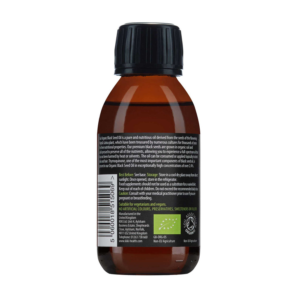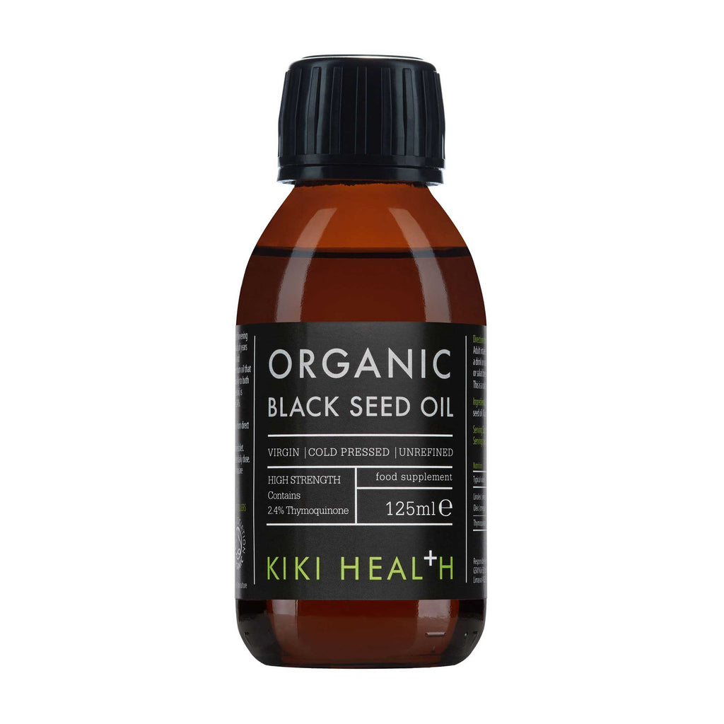 "A pure and nutritious oil derived from the freshly pressed seeds of the Nigella Sativa plant. Kiki premium black seeds are grown in organic, pesticide-free soil and cold-pressed to preserve the potent nutrient profile, resulting in a full-spectrum oil that has not been harmed by heat or solvents.Thymoquinone is one of the most important components of black seed oil. This high strength oil contains 2.4% Thymoquinone thanks to the organic nutrient-rich soil, free of synthetic fertilizers and pesticides, The oil can be ingested or applied topically to both skin and hair to tackle dry, itchy, and scaly skin."