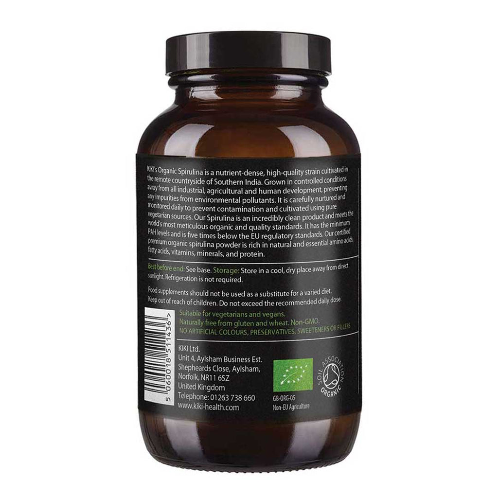 "KIKI's Spirulina is a strain grown naturally on a peninsula in Southern India, away from enviornmental pollutants such as industrial and agricultural development and is surrounded by natural forests.To ensure that KIKI Spirulina is as pure as possible, it is routinely tested for the presence of mercury, lead, and other pollutants.To preserve all of the nutritious content, the spirulina is thoroughly dried using an evaporation procedure at low temperatures.Spirulina Powder from KIKI Health is certified organic and contains no fillers or additions of any kind."
