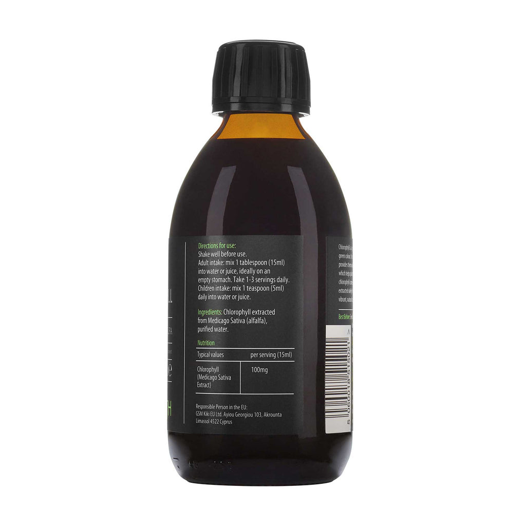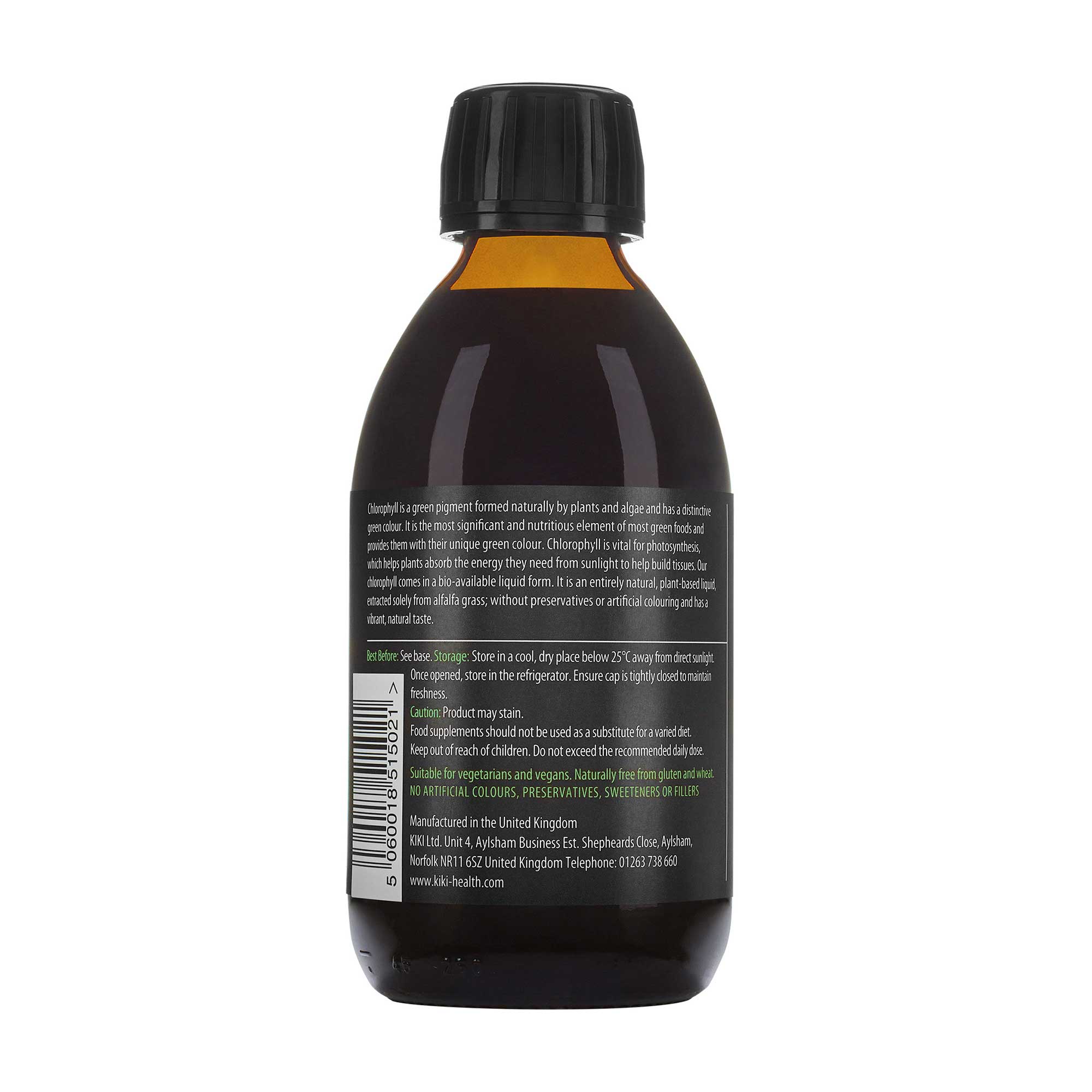 "KIKI Health’s Liquid Chlorophyll comes in a bio-available liquid form and is an entirely natural, plant-based supplement extracted solely from alfalfa grass. Free from preservatives, sweeteners, fillers or artificial colouring and subsequently has a vibra"