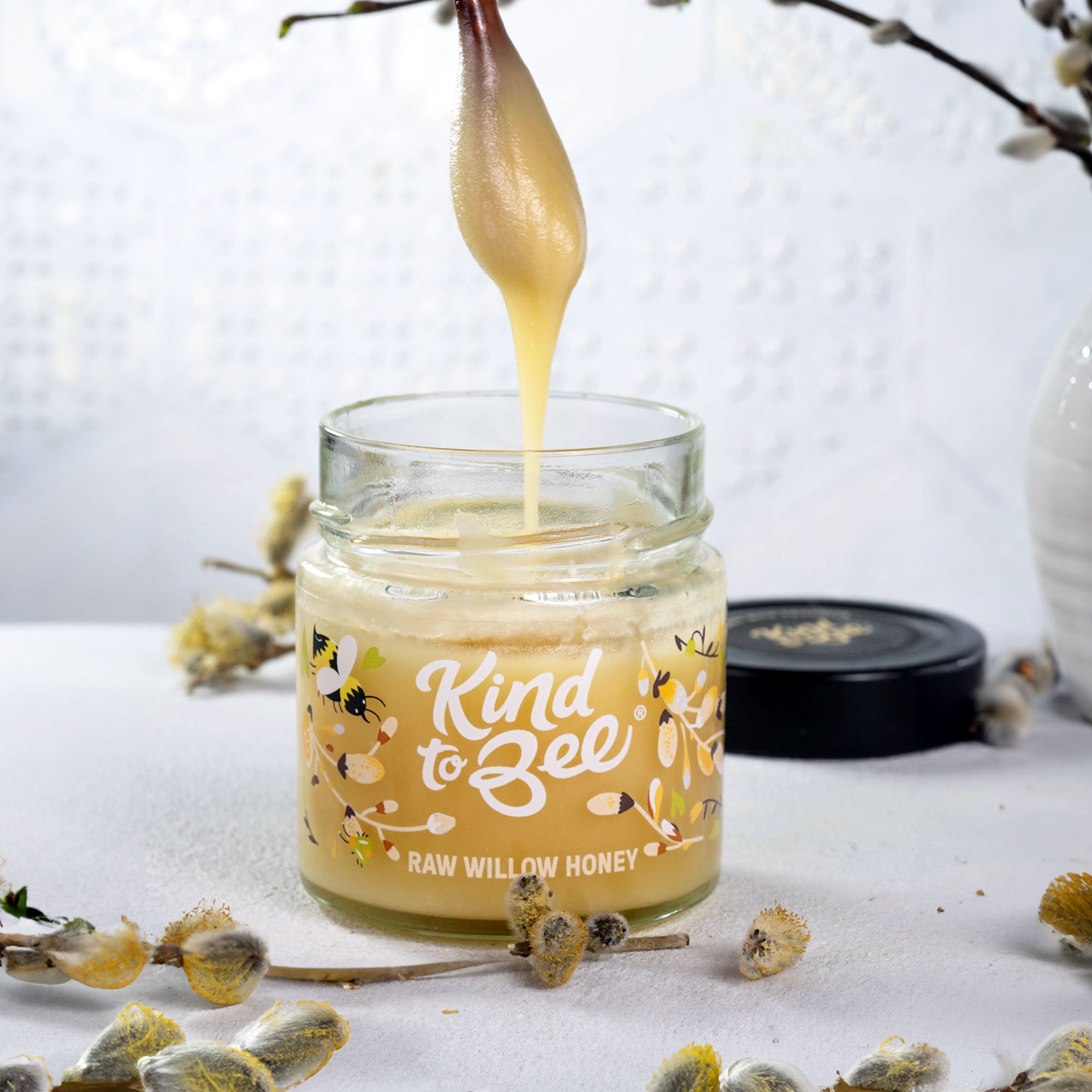 Notify Me When Available"Tasting notes: Creamy & SophisticatedKind to Bee Raw Willow Honey is a rare and truly unique find. With its milky white colour and delicate, creamy texture, it offers a mild, sweet flavour reminiscent of sugary confections — a velvety delight with elegant notes that dance on the palate. As a monofloral honey, it reflects the purity of a single floral source. This creamy sensation is simply irresistible. Its subtle, pleasant aroma adds a lovely brightness when incorporated into your favourite treats.Kind to Bee Raw Willow Honey proudly received the prestigious Great Taste Award in 2024. It is KLBD kosher certified — a gold standard for ethical, healthy, and conscientious food production, and a trusted mark for those seeking quality and transparency, including those following religious diets, vegetarians, individuals with dairy sensitivities, and anyone choosing GMO-free, organically produced, high-integrity foods.Kind to Bee stands as a beacon of ethical and sustainable practices. Its cruelty-free harvesting gathers only surplus honey, ensuring the well-being of the bees and the continuity of natural prosperity. The bees thrive in a pure and natural environment with thoughtful apiary management that embraces a holistic approach. The Kind to Bee team eschews antibiotics, high-fructose corn syrup feeds, and synthetic treatments — prioritising humane bee care and nurturing healthy landscapes.A gift of distinction, Kind to Bee honey is more than unique — it is a royal contribution to bee welfare and to the Earth we all share."