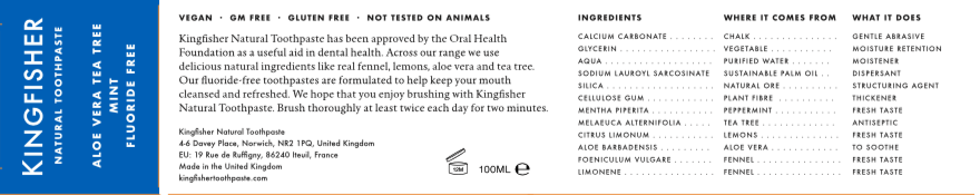 Kingfisher Aloe Vera Tea Tree Mint Toothpaste 100ml