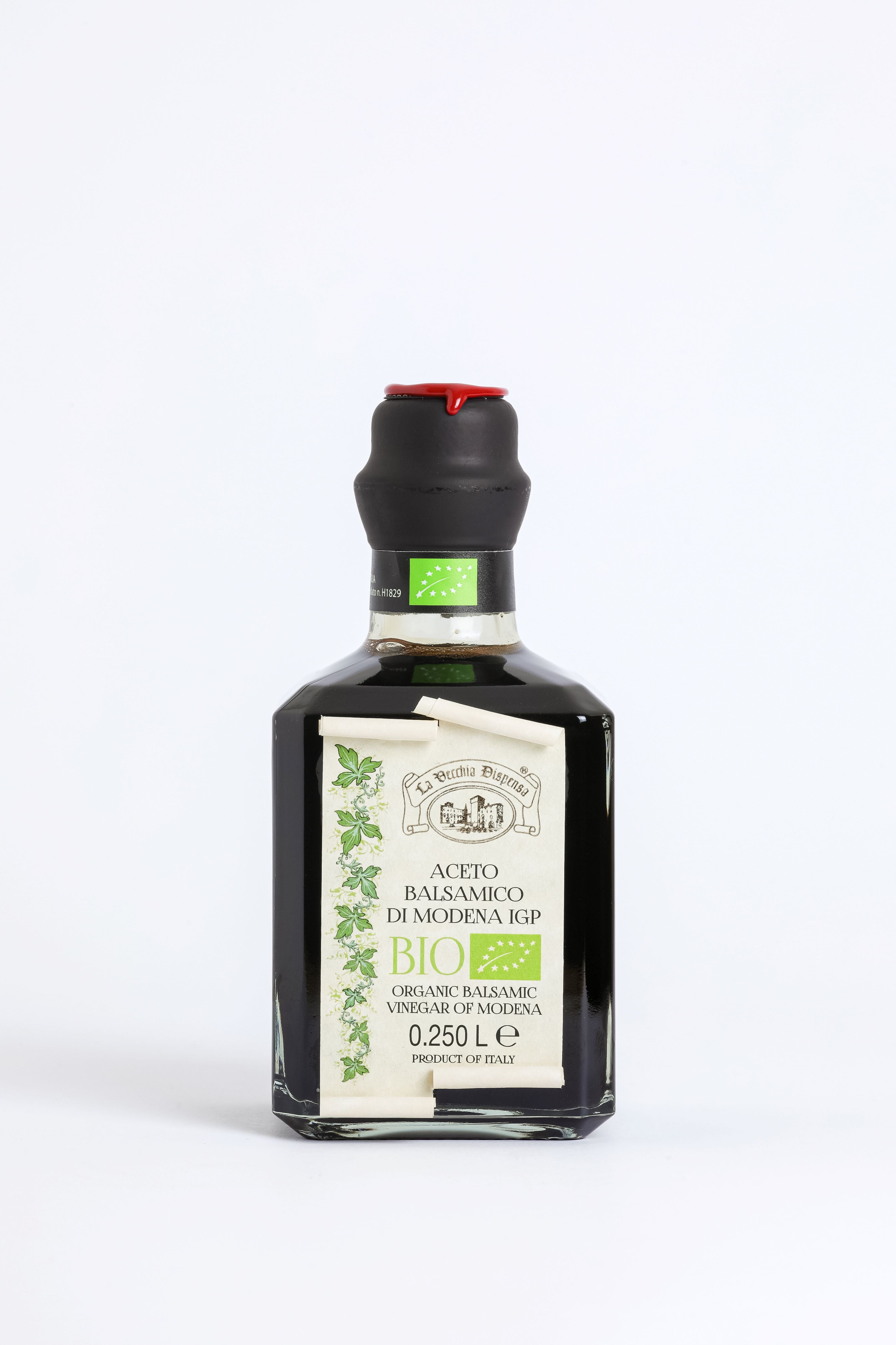 "In Castlevetro di Modena, La Vecchia Dispensa use only organic grapes and traditional methods to produce this IGP vinegar. It is fresh and vibrant with notes of red fruits and grape shining through. "