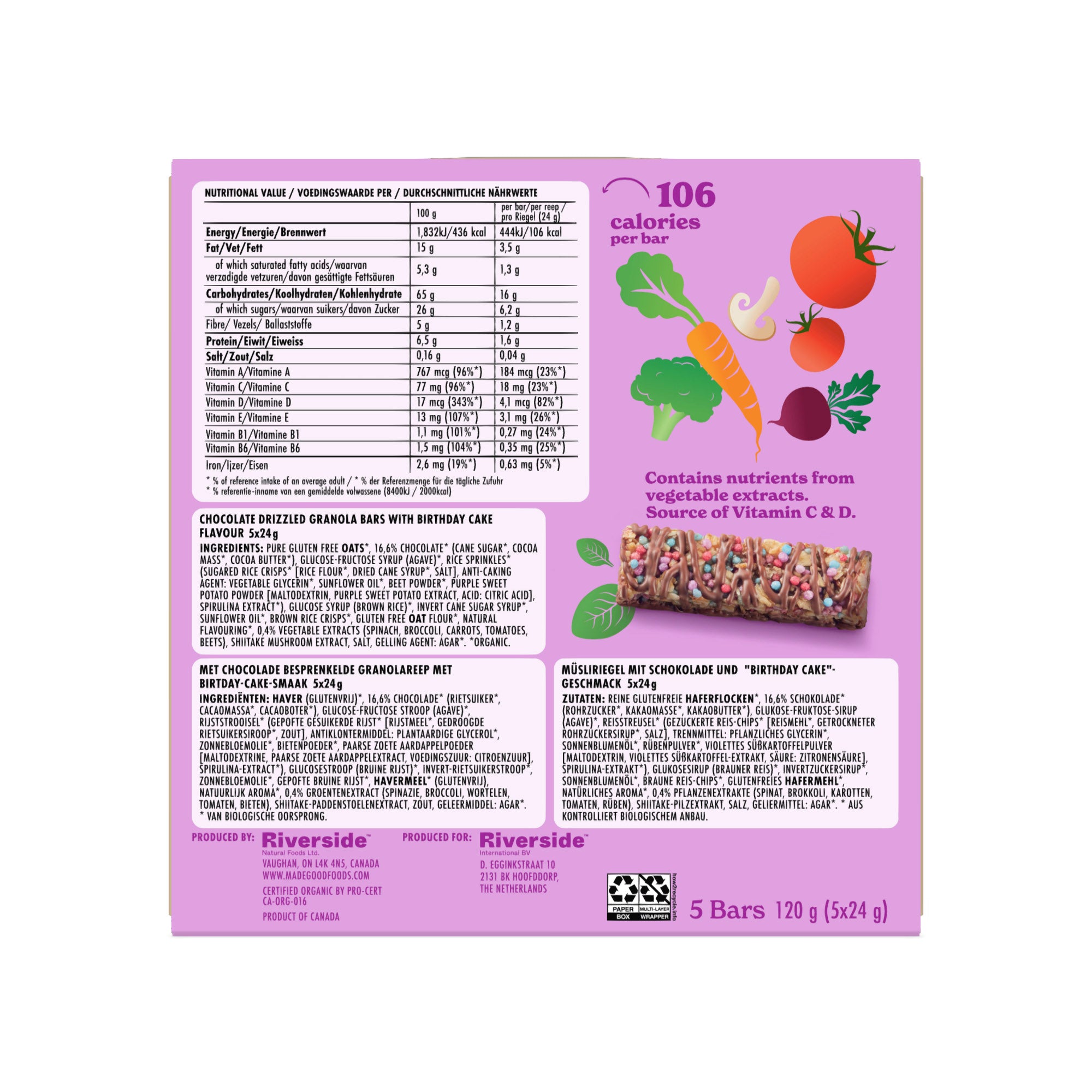 "MadeGood Granola Bar, Chocolate Drizzled Birthday Cake" 5x24g