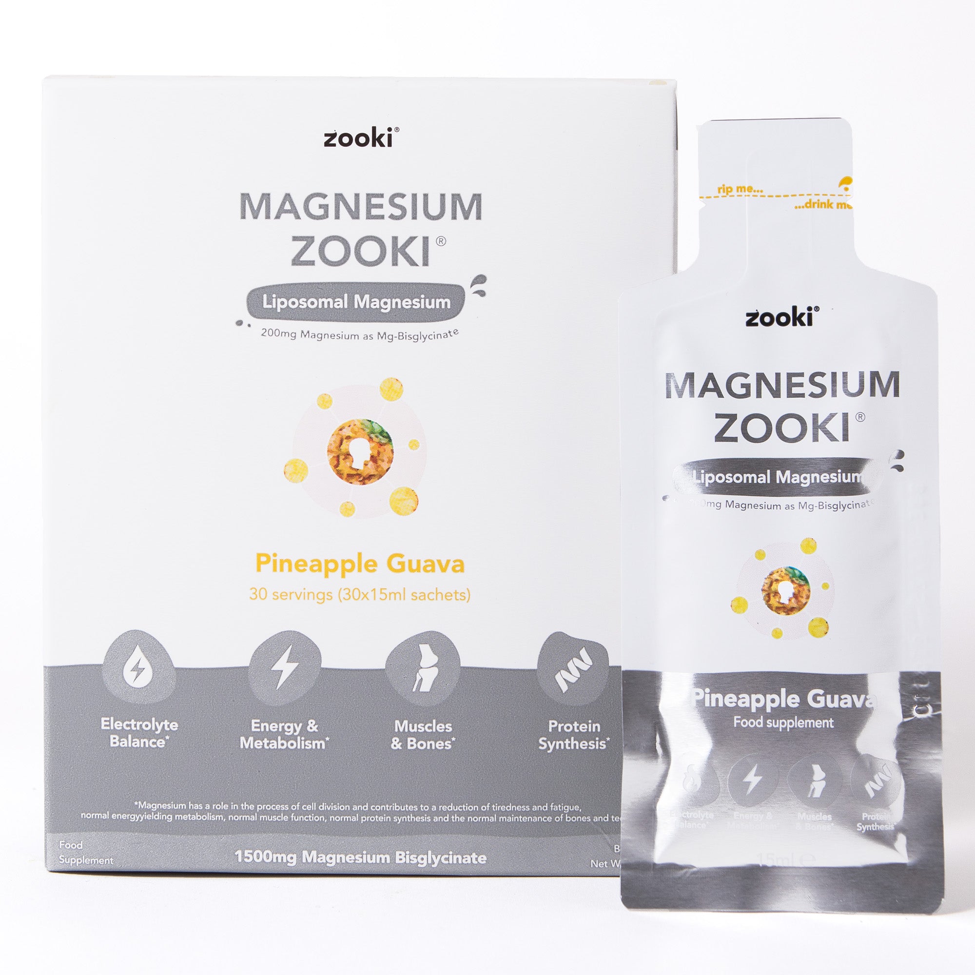 "High strength, high absorption magnesium bisglycinate to help with a plethora of bodily functions, such as supporting sleep and relaxation, muscle function and regulation of blood pressure and blood sugar. In delicioius Pineapple Guava flavour"