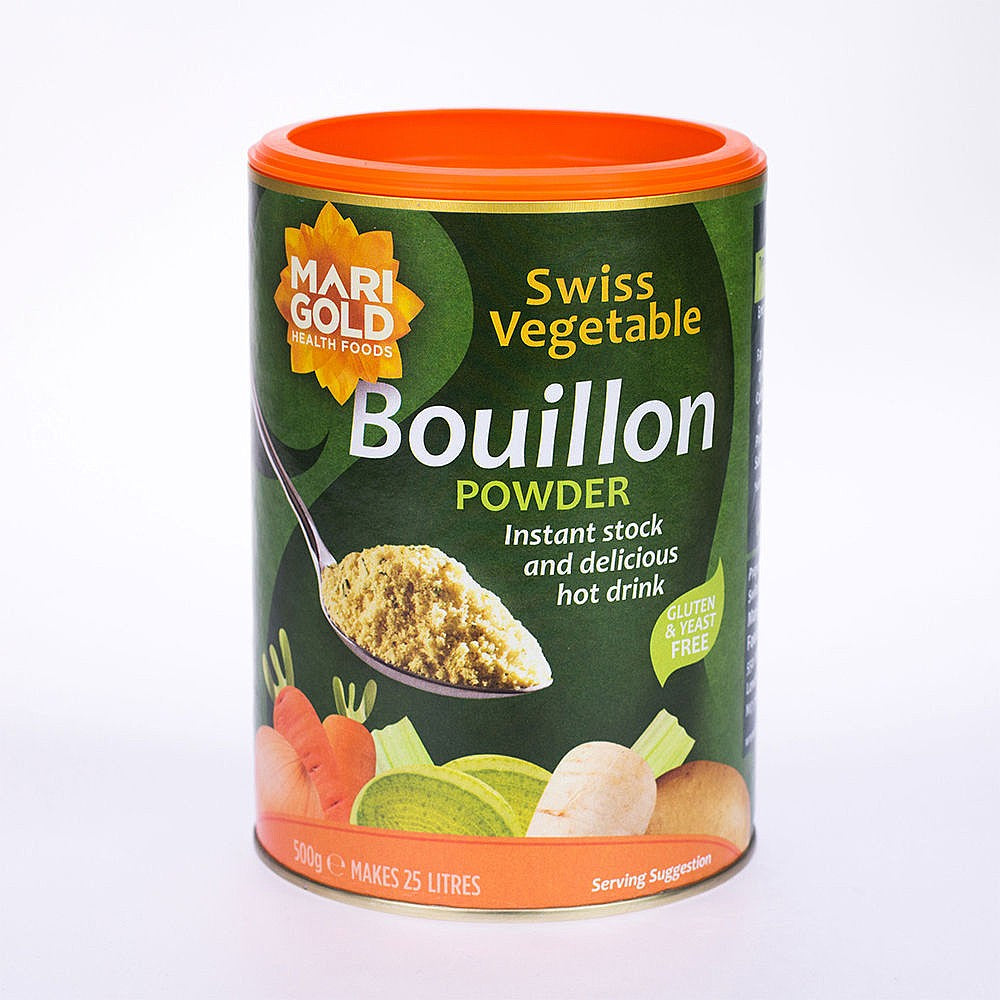 Notify Me When Available"Marigold’s flavoursome bouillon has been made to a traditional Swiss recipe for decades. Convenient and delicious – Marigold bouillon is used by many a chef – in homes as well as restaurant kitchens. Ideal to enhance the flavour of soups, stews, casseroles, sauces, rice dishes (or even as a hot drink). The most popular Marigold Bouillon, made to the original Swiss recipe. Flavoursome and versatile. Instantly prepared. “If there were good ingredient awards, this would win first prize.” – Delia Smith. Natural ingredients. No nasties. Only 12 calories per cup as a hot drink. Vegan. Gluten free. Palm oil free. No added yeast. Family size."