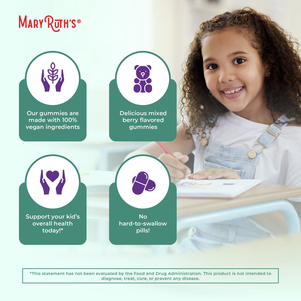 "Mary Ruth's Organic Kids Immunity Gummies are formulated to support children's immune systems with a blend of key nutrients including vitamin C and zinc, both of which contribute to the normal function of the immune system. These mixed-berry-flavoured gum"
