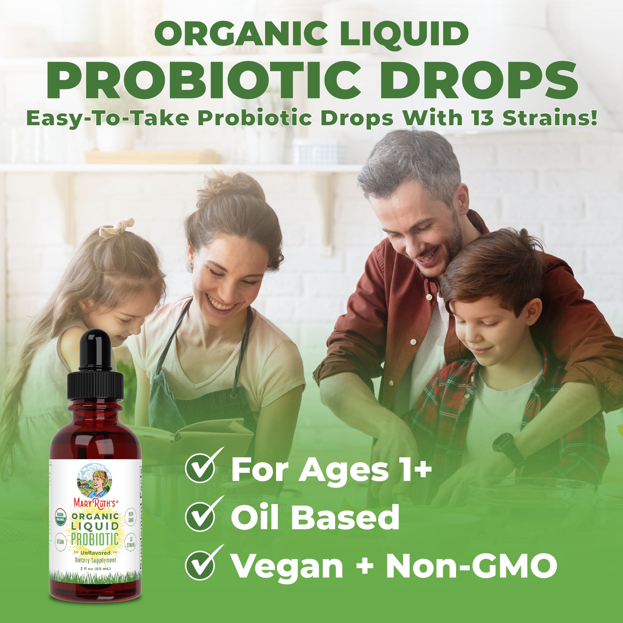 "Mary Ruth's liquid probiotic contains 13 strains, including Bacillus coagulans Unique IS-2®. A daily dose (4 pipettes, 3 ml)provides 3000 mg of the proprietary blend. Each 60 ml bottle offers a 20-day supply. It is flavourless, vegan, anddesigned for a "