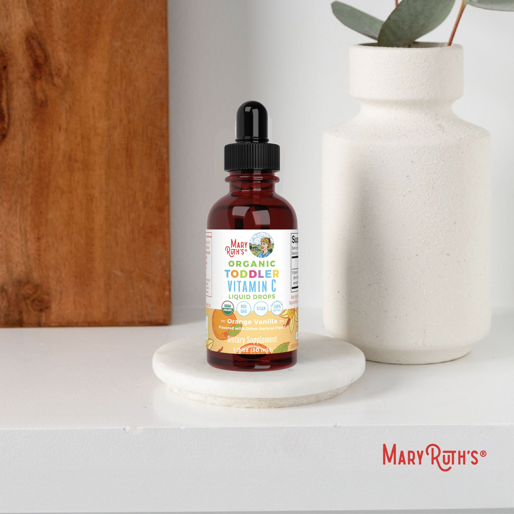 "Mary Ruth's toddler-friendly liquid vitamin C is derived from organic acerola cherry extract (PurC). It offers antioxidantsupport, immune system strengthening, and supports collagen synthesis for healthy skin, bones, and blood vessels. Theproduct is fla"